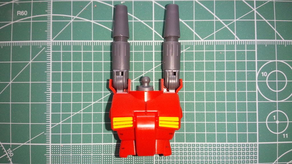 ガンキャノンの胸部は、エアインテークの黄色を除いて真っ赤なボディになっています。