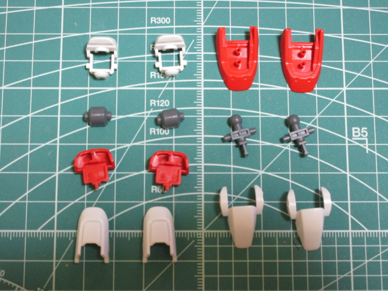 まずは、HGUC V-DASHガンダムの足のパーツを切り出してみましたが、白、赤、グレーとPCパーツで構成されています。