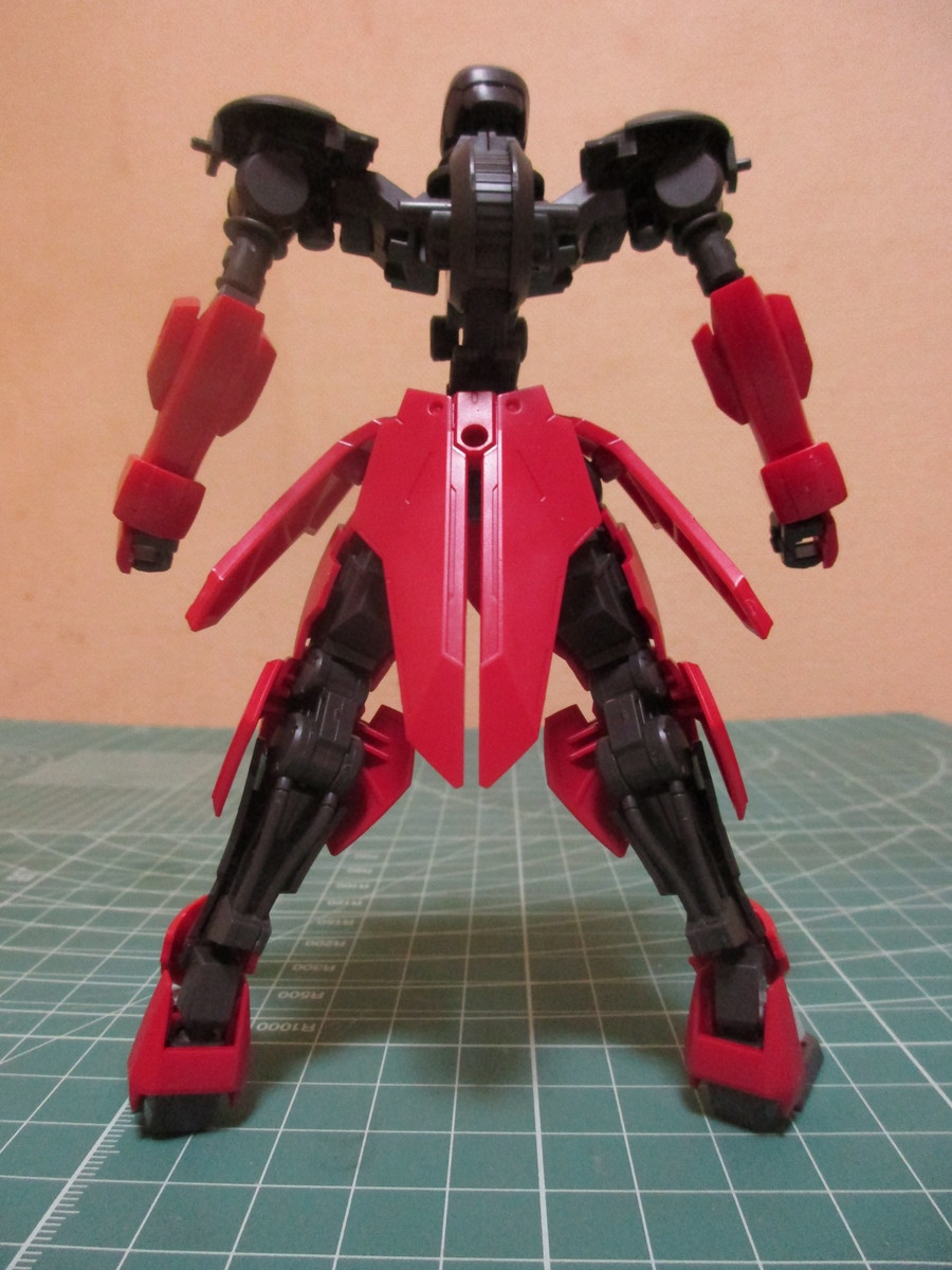 何と、脚部の後ろ側はフレームがむき出しになっています。このシリーズの機体は内部フレームがむき出しになっているデザインが多いですが、ここまでむき出しなのもこれはこれで清々しいですね笑