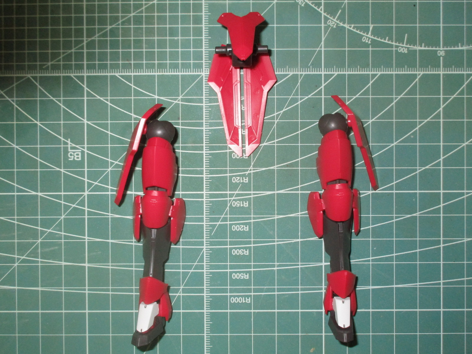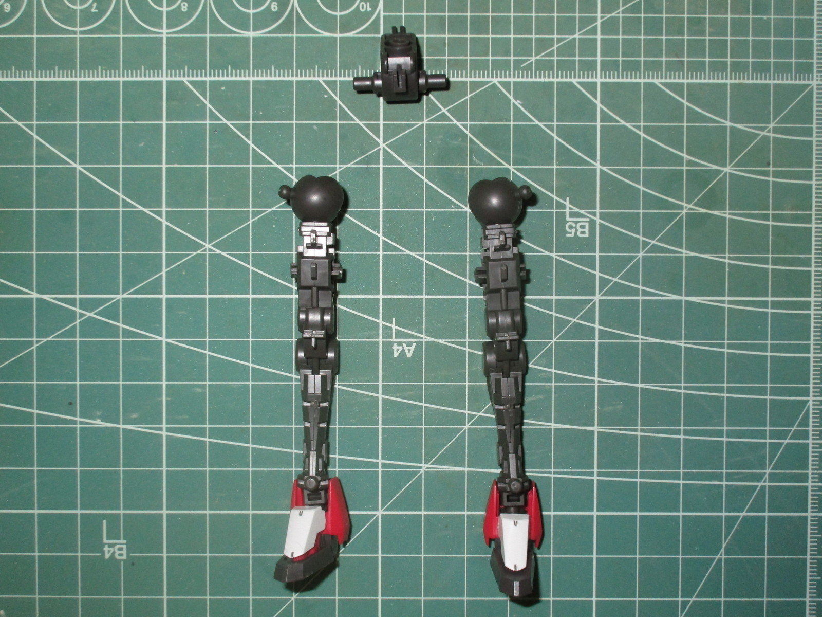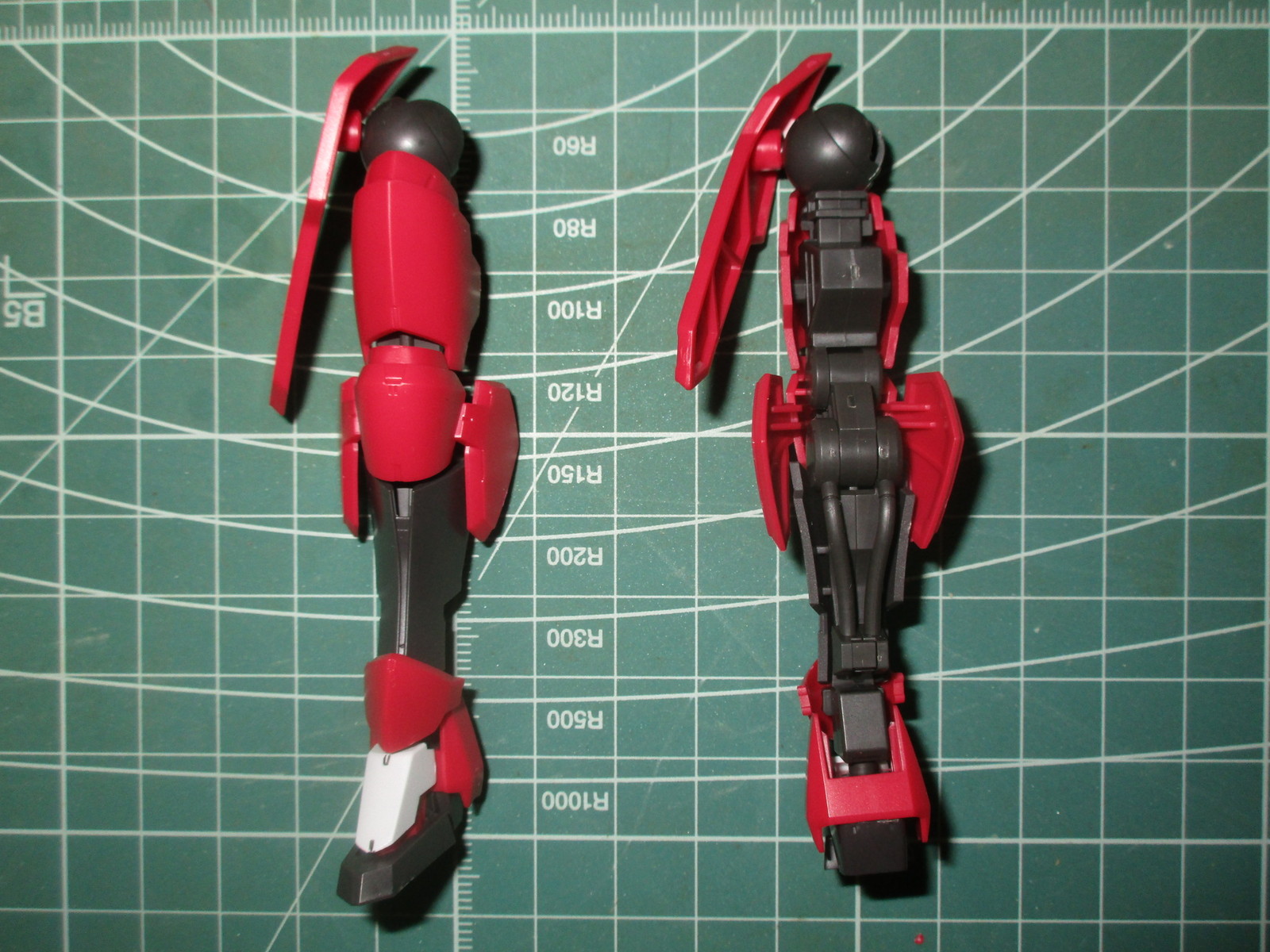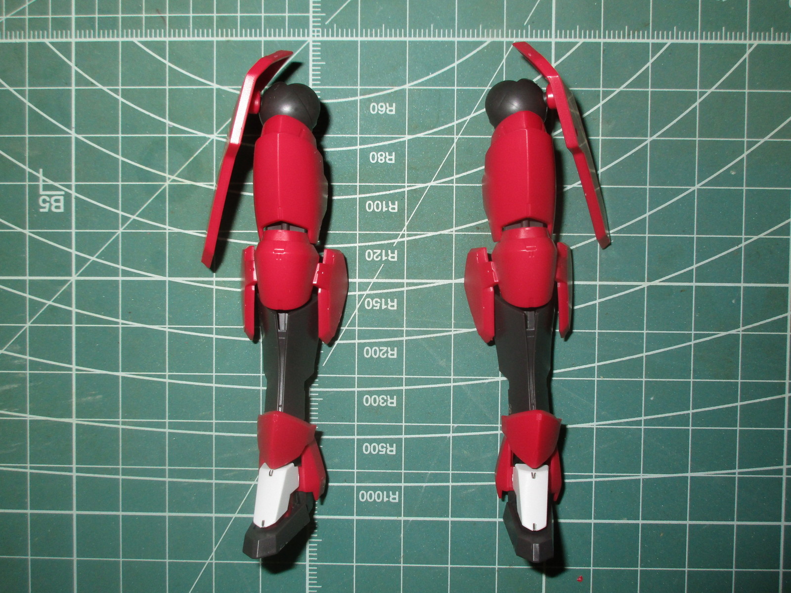 脚部と腰部の外装は、赤、黒のパーツで構成されています。