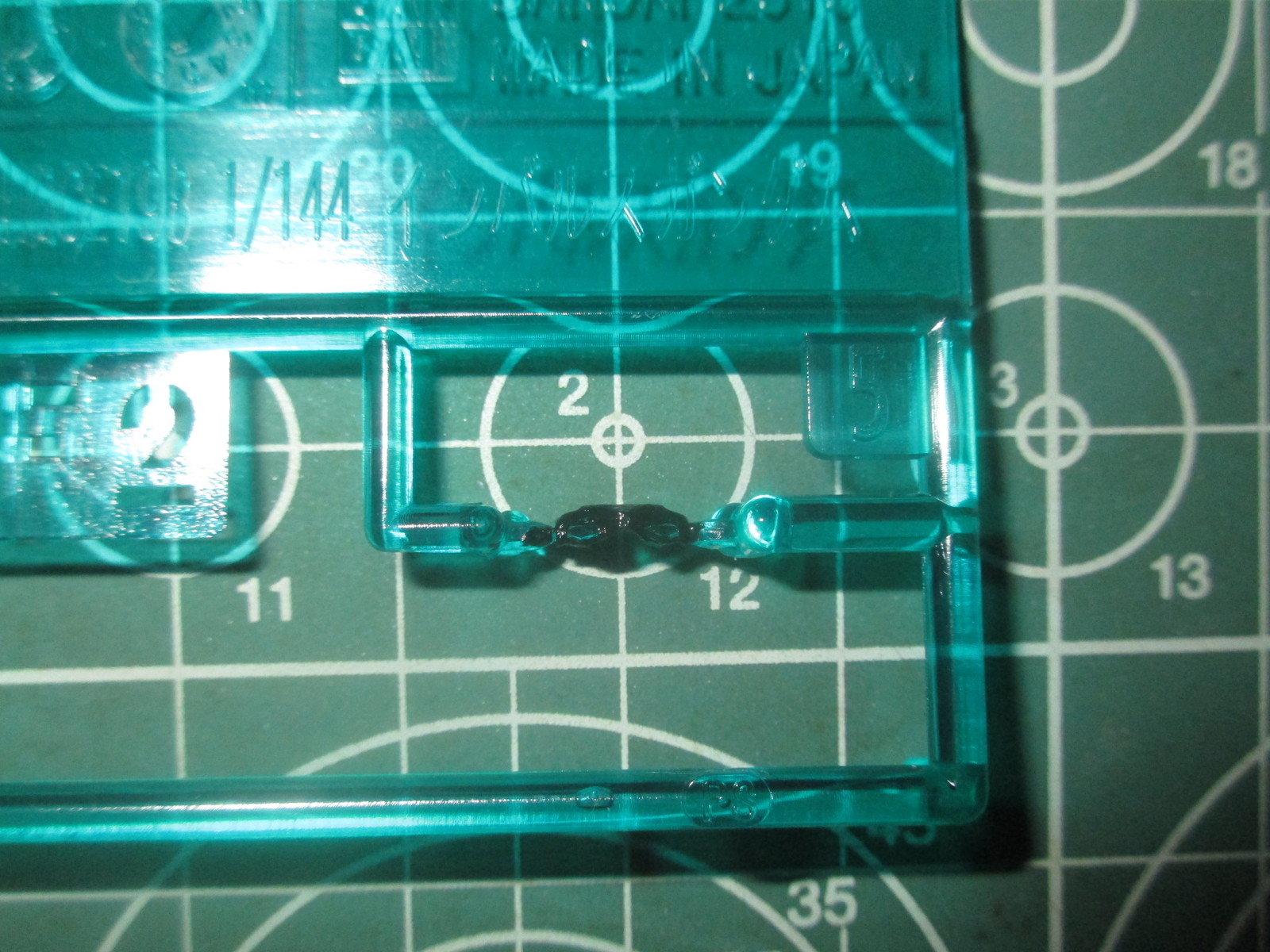 緑のクリアパーツはカメラアイのパーツなのですが、あらかじめ淵を黒で塗装しています。