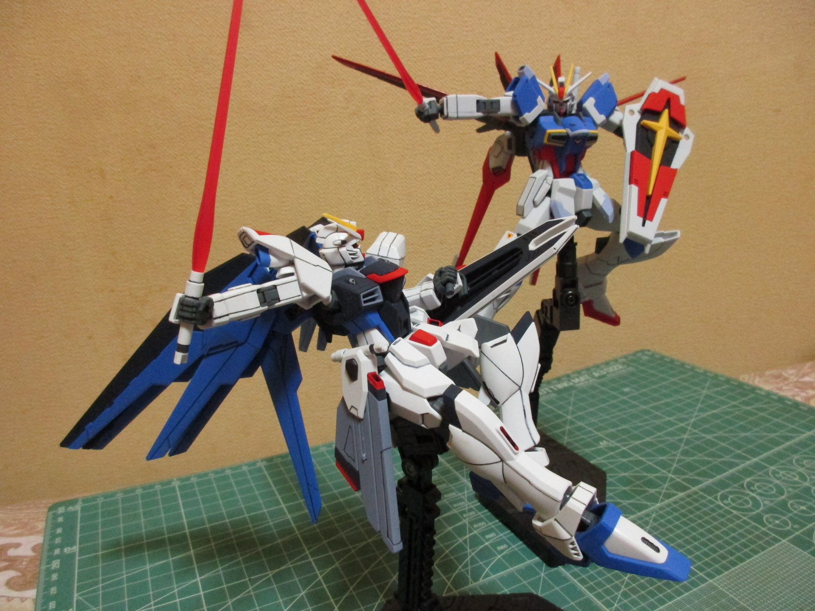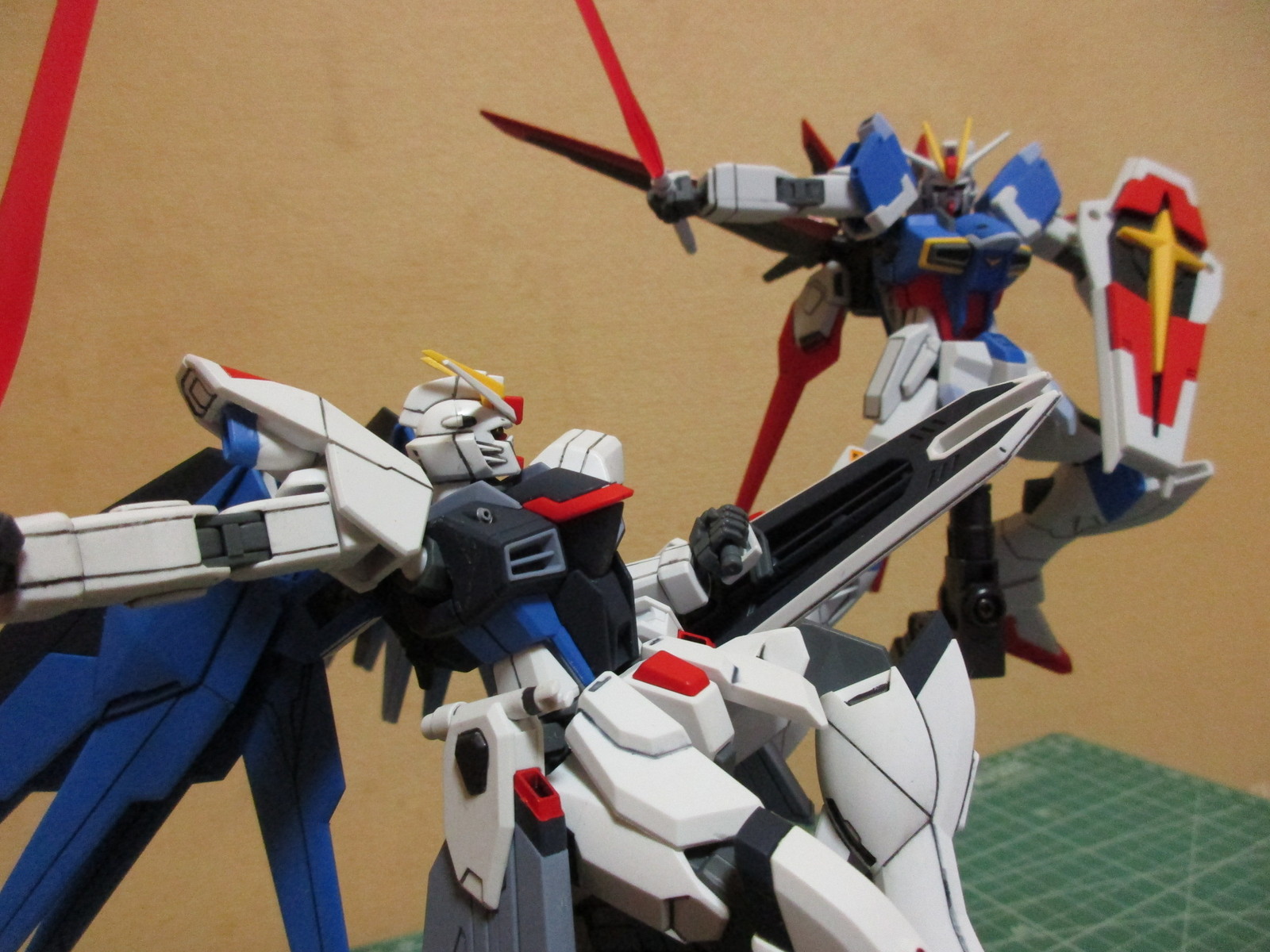 以前に製作したHGCE 1/144 フリーダムガンダム REVIVE と戦闘シーンを再現してみました。