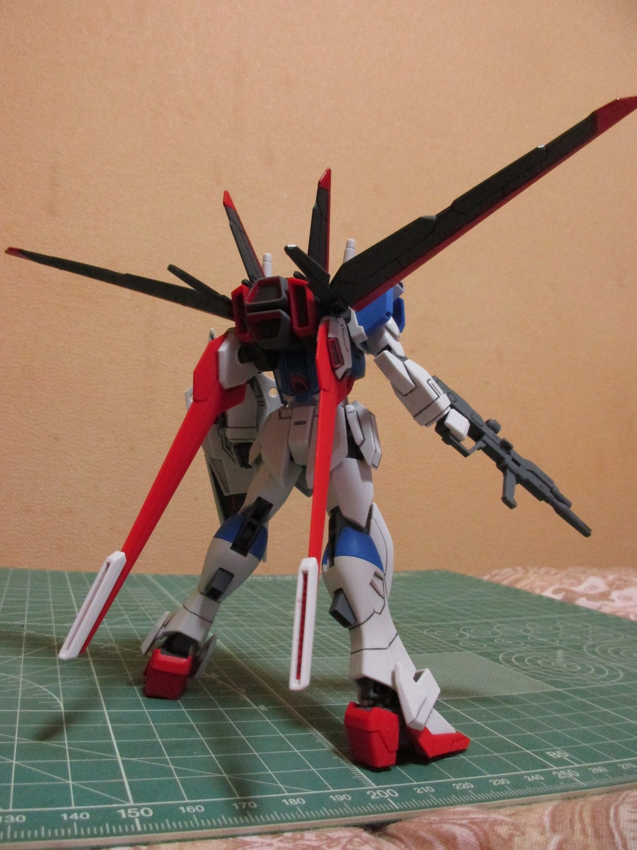 まずは、HGCE 1/144 フォースインパルスガンダムをフロント、サイド、リアから見た所です。