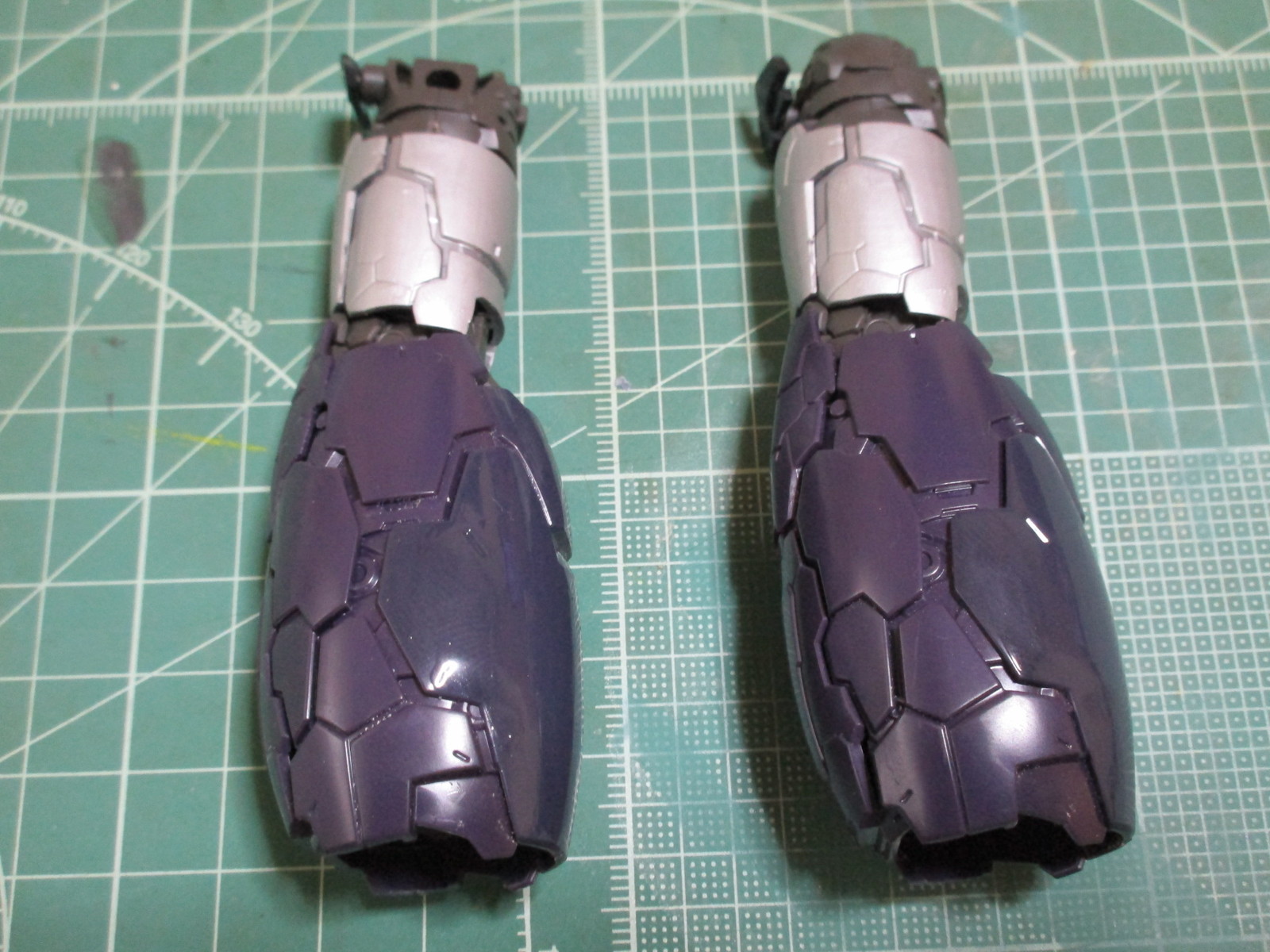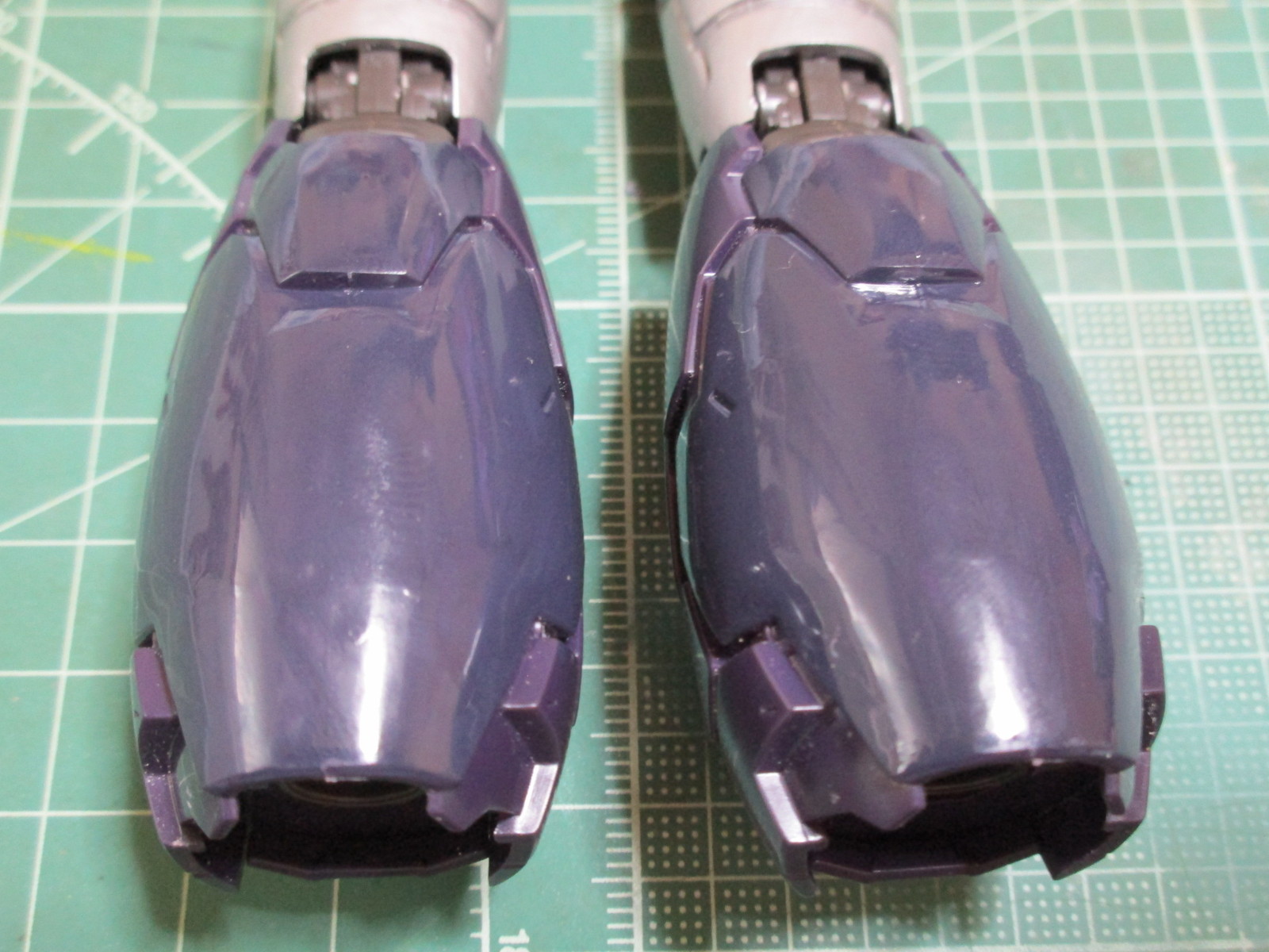 ということで足と同じく、脚部もタミヤセメントを塗って合わせ目消しを行うことにしました。