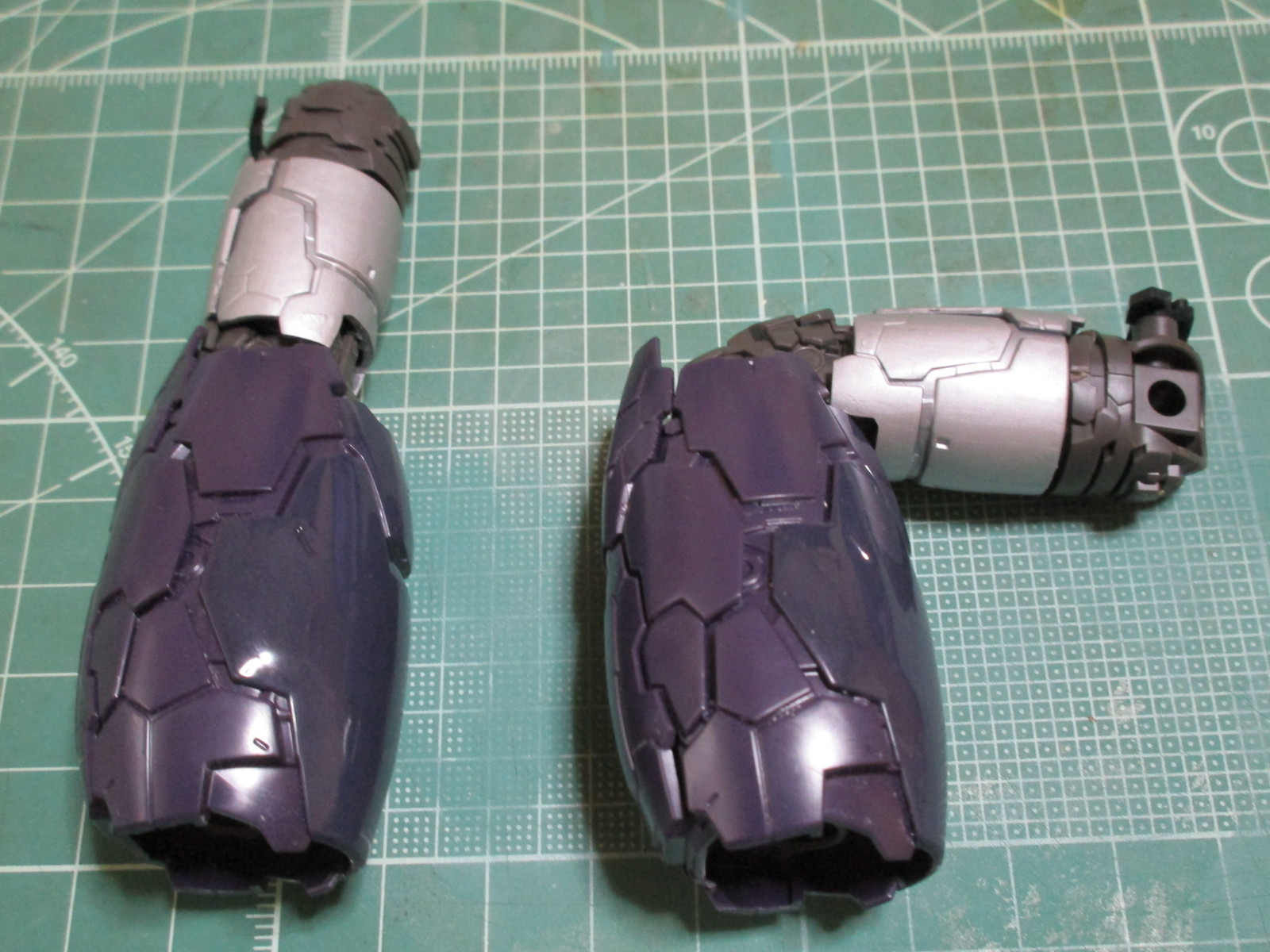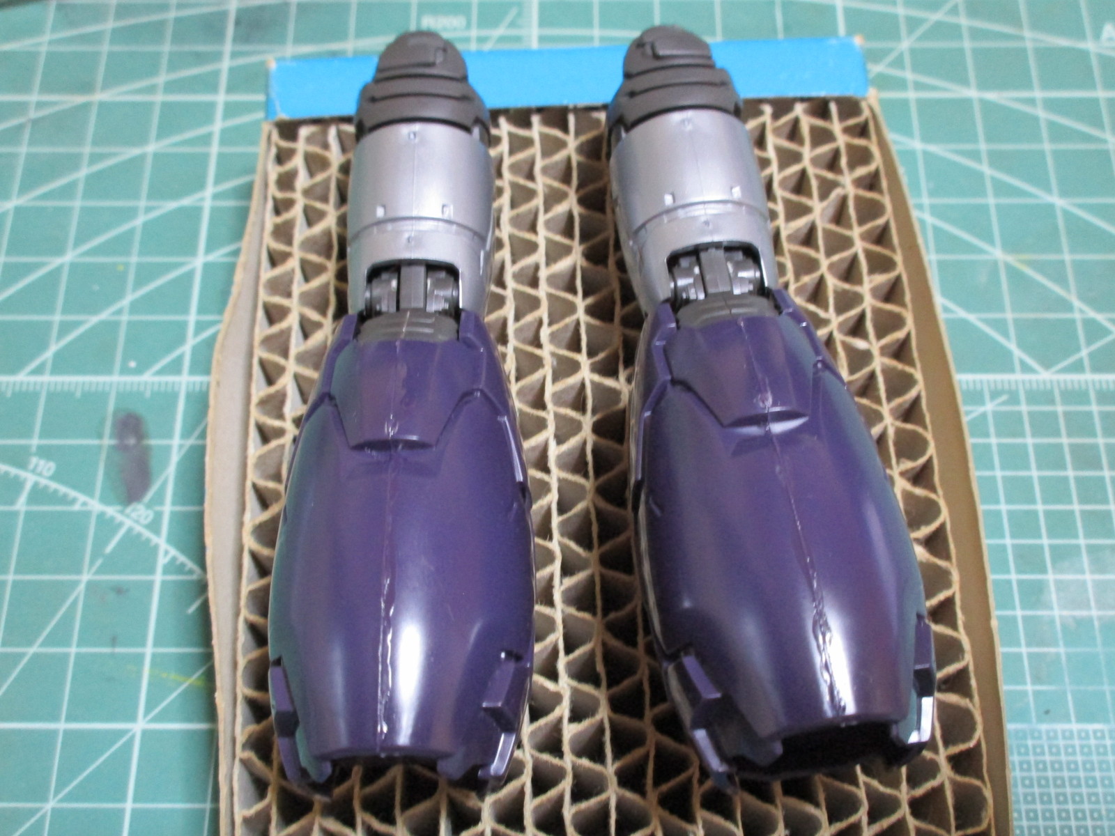 数日置いて、脚部ヒザ下の接着部分が硬化したので、ヤスリ等で慣らした後に塗装しました。