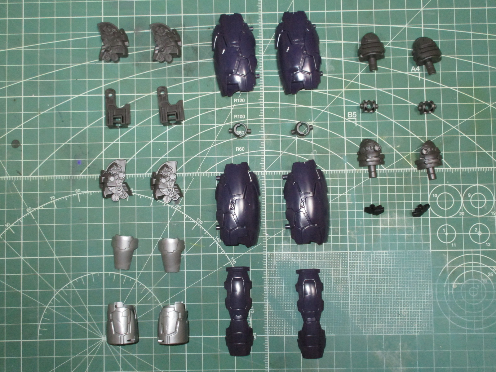 合わせ目などの処理も終わったので、HG マジンガーZ(INFINITY Ver.)の脚部のパーツを組んでみました。