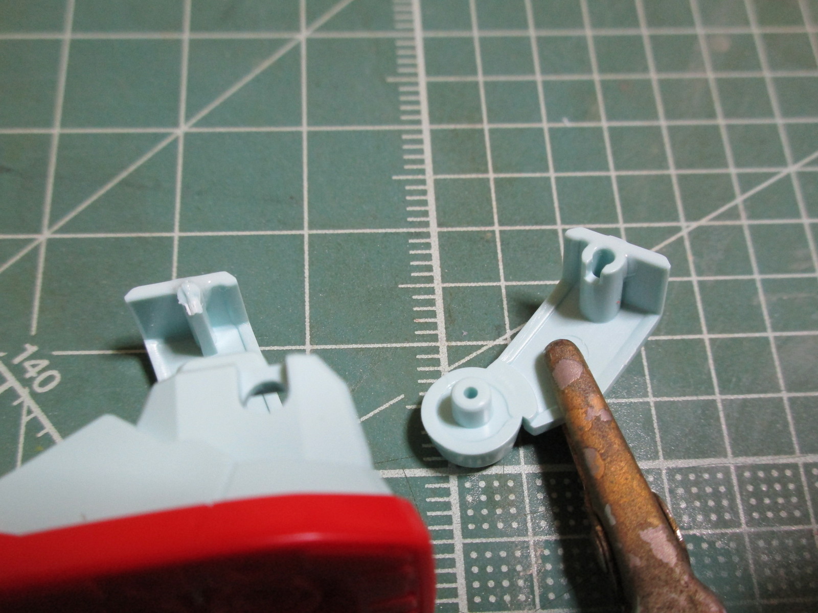 まず、多色成型のパーツで構成されているAランナーでは、足の赤いパーツを使用します。