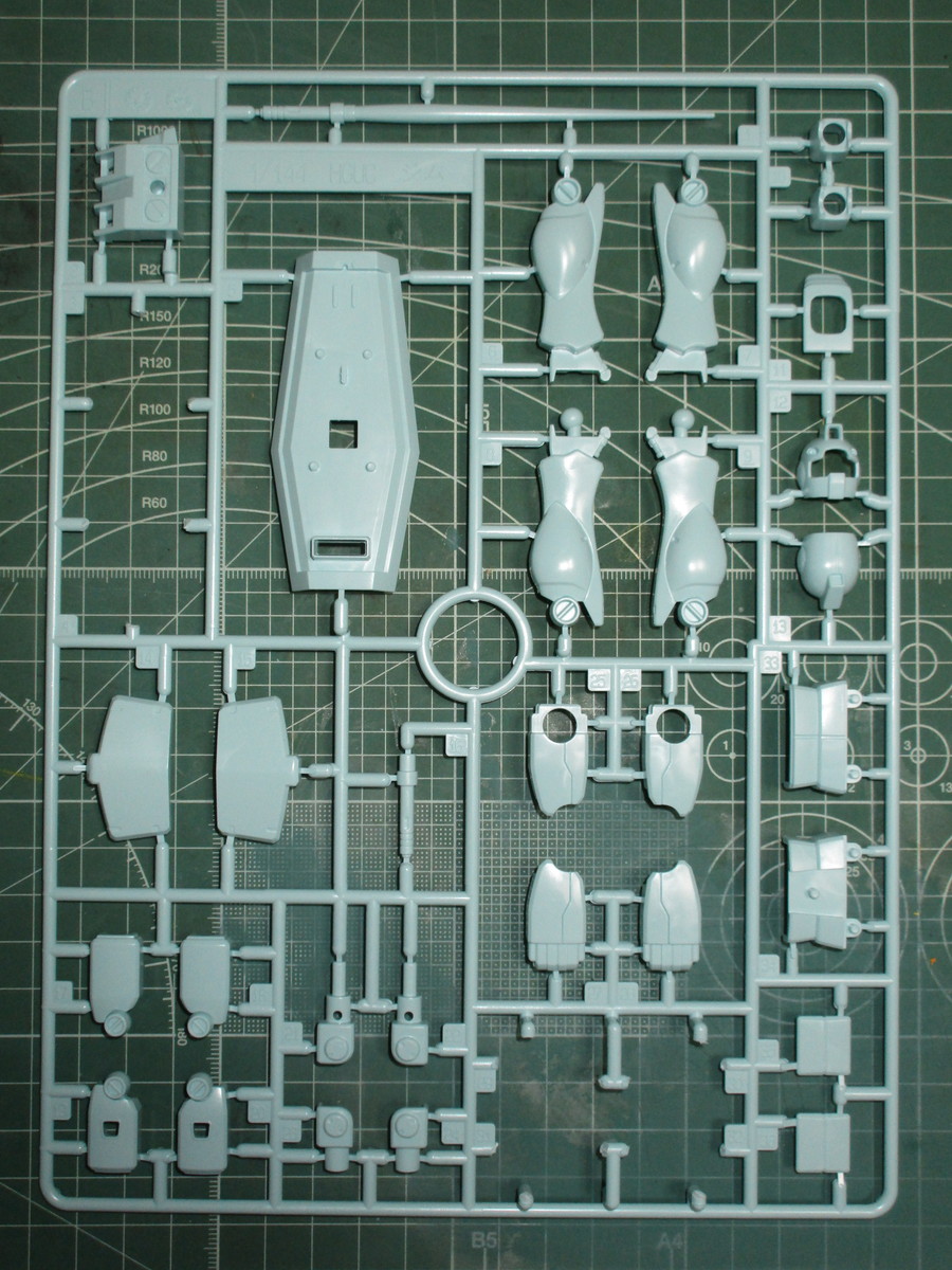 まず、多色成型のパーツで構成されているAランナーでは、ヒザ関節部分のグレーのパーツを使用します。