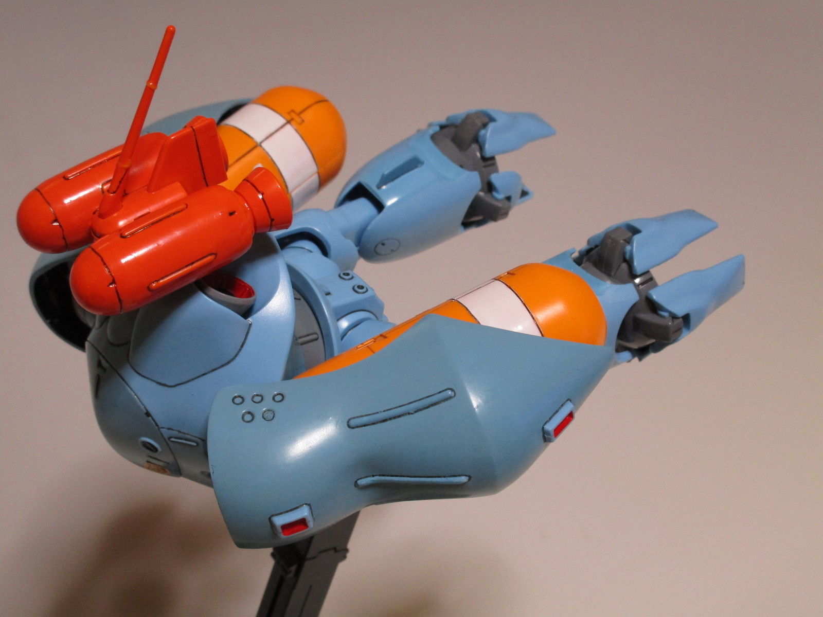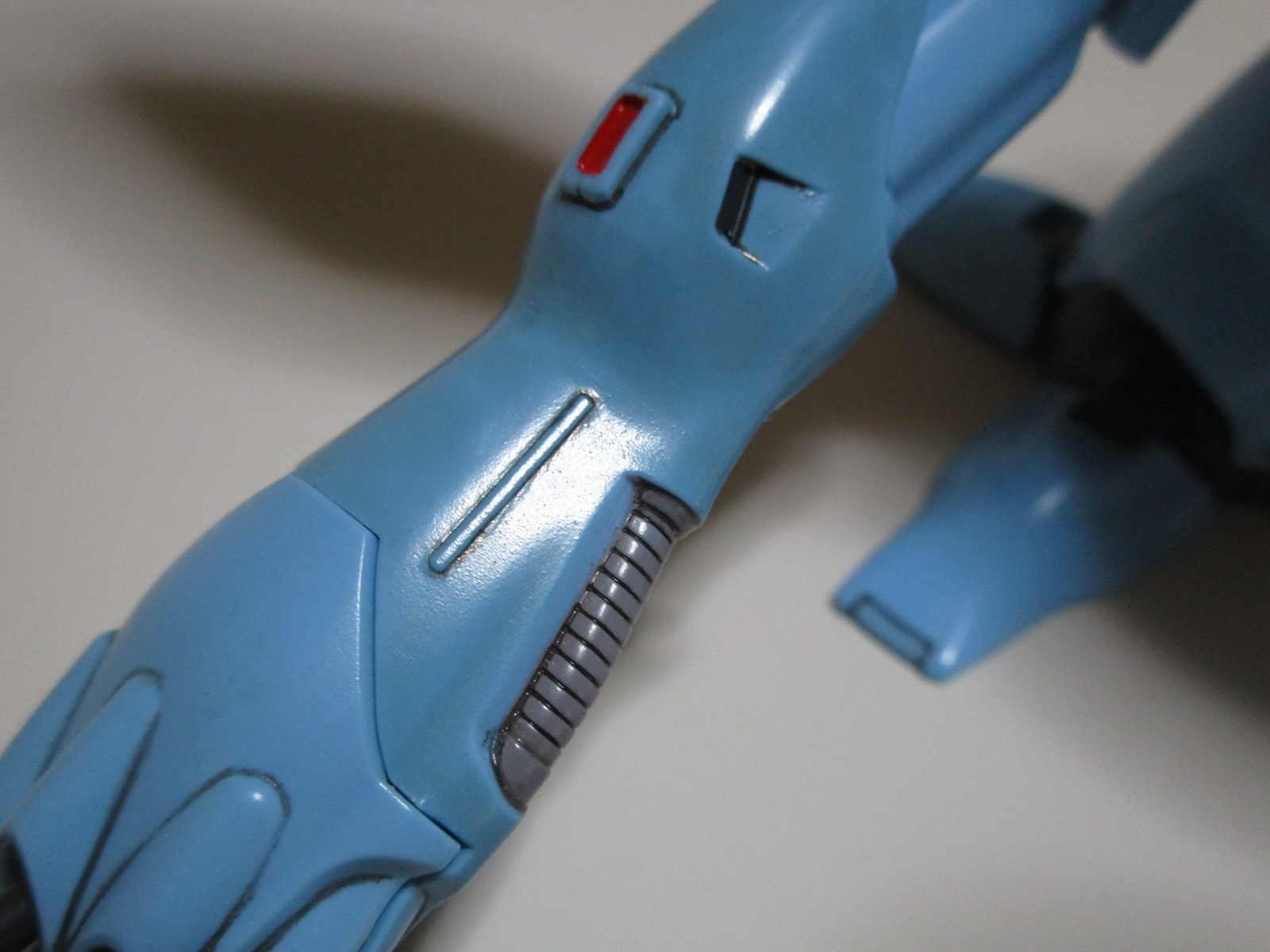 腕部の赤い部分や、パイプのグレー部分を塗装しました。