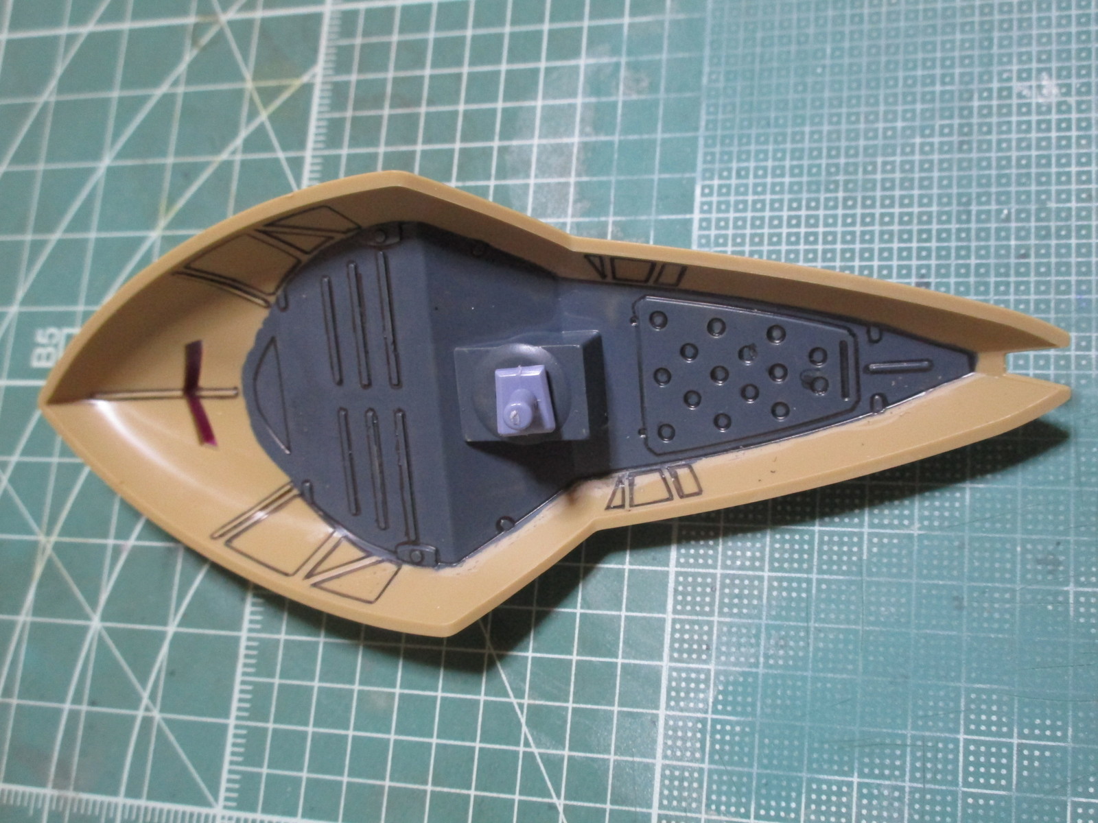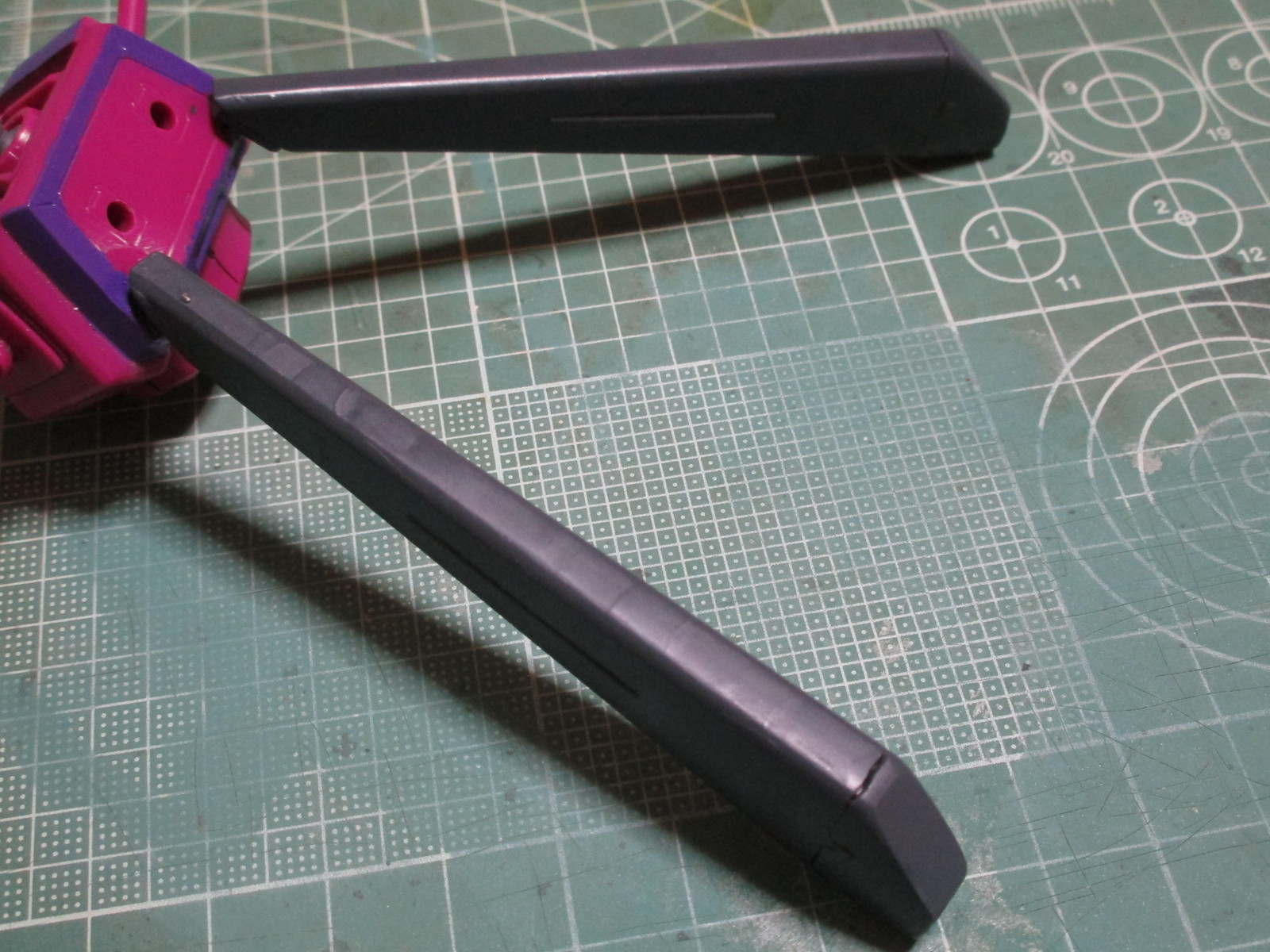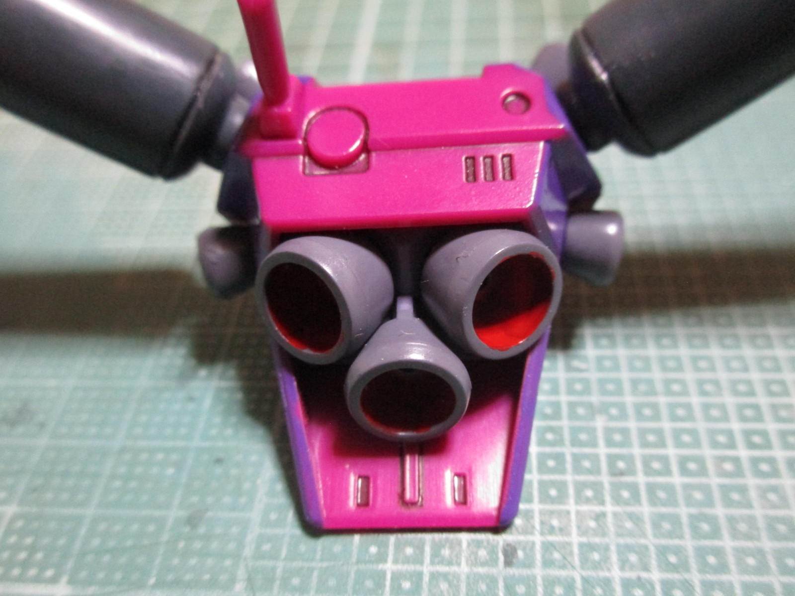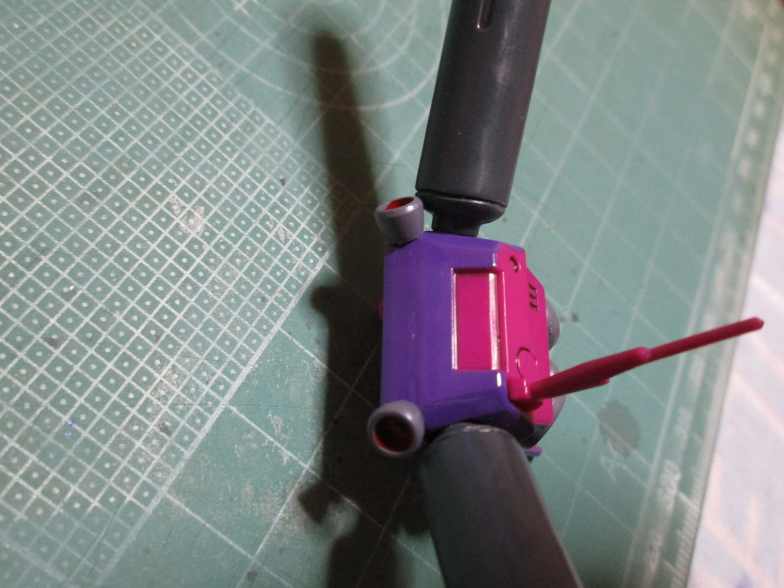 成形色とは違う紫になってますが、取説のカラーガイドに沿って塗料を希釈したら、この紫になりました。こういう塗装表現として、このまま続けました(^_^;)