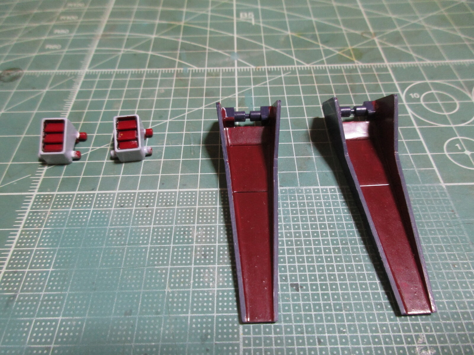 大きなパーツの方は、取説のカラーガイドを参考にして塗装しましたが、グレーの方はそれっぽい色を塗った感じです。