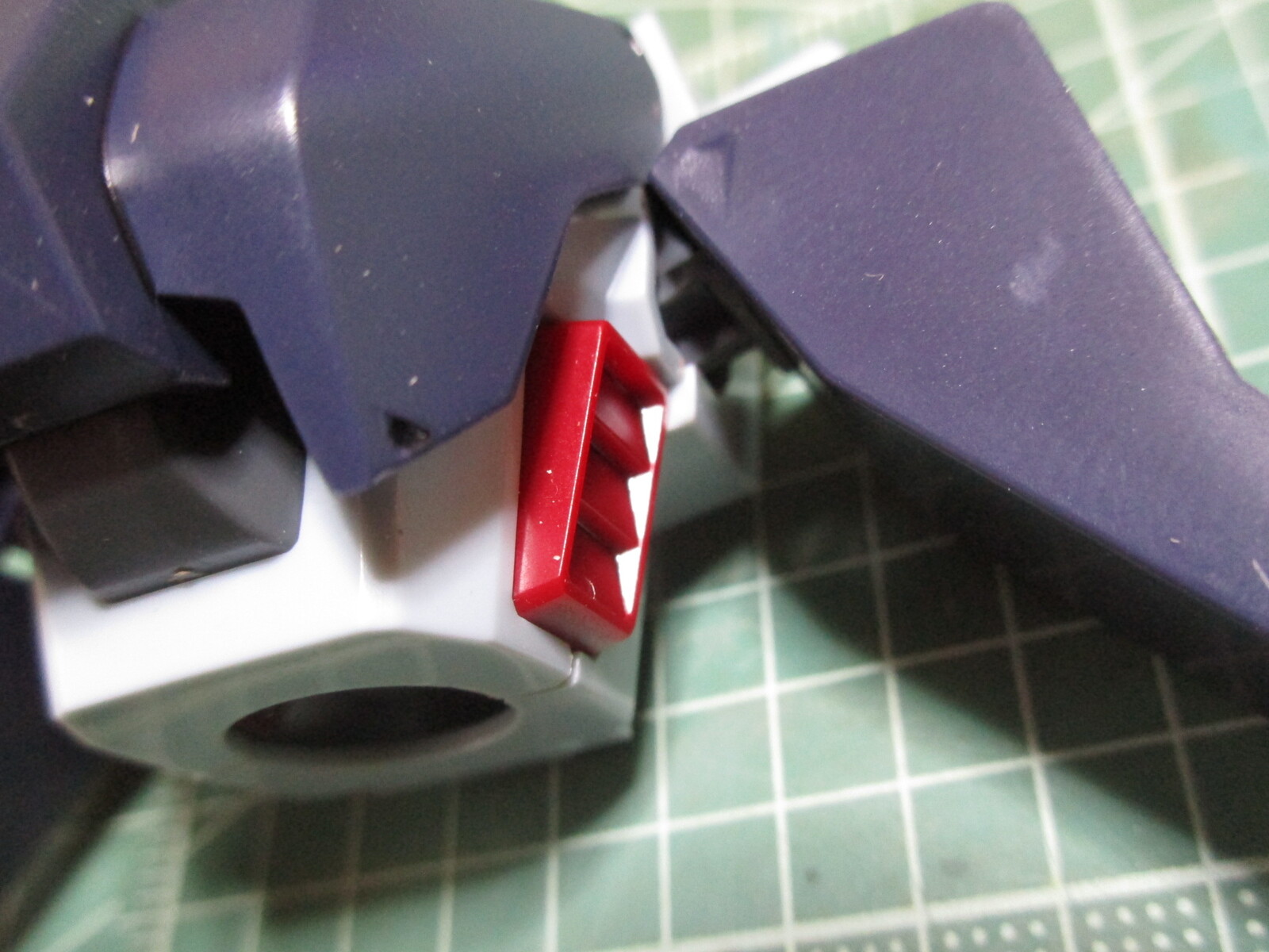 次の塗装箇所は、胸部側面の赤いパーツです。