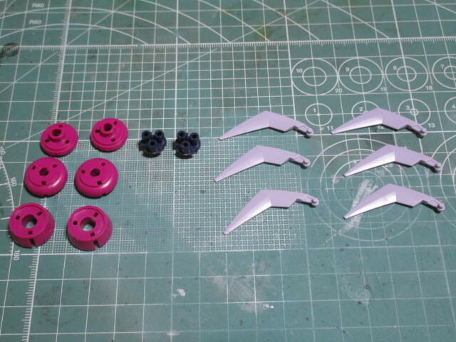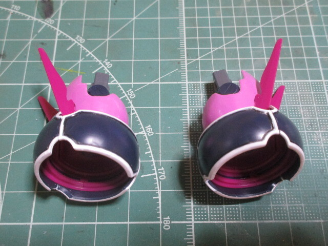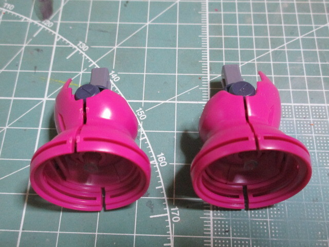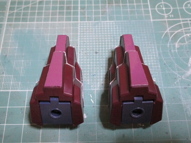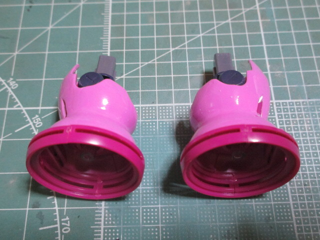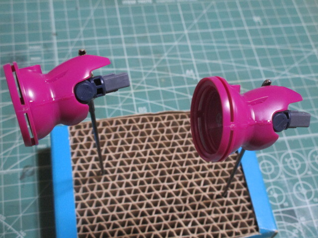 塗料は取説のカラーガイドを参考にして調色しましたが、成形色と比べてピンク色が強く出ています。