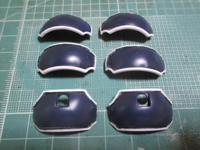 肩部アーマーの合わせ目も接着剤を使って消した後、ヤスリ等で慣らして塗装しました。