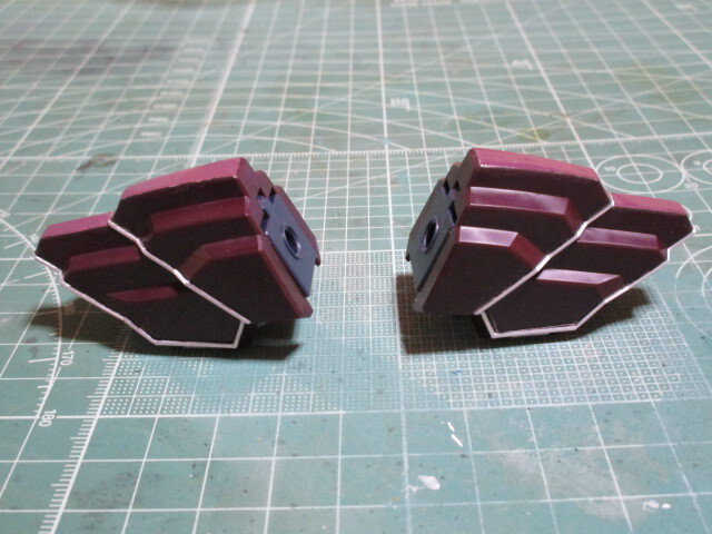 肩部アーマーの白いラインやバーニア類も塗装しました。