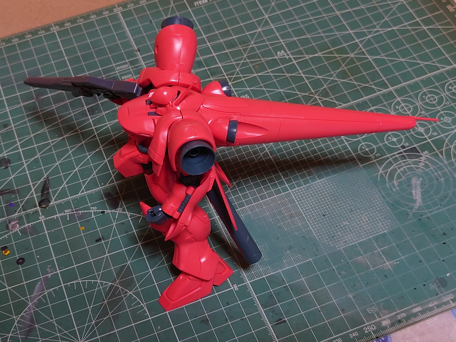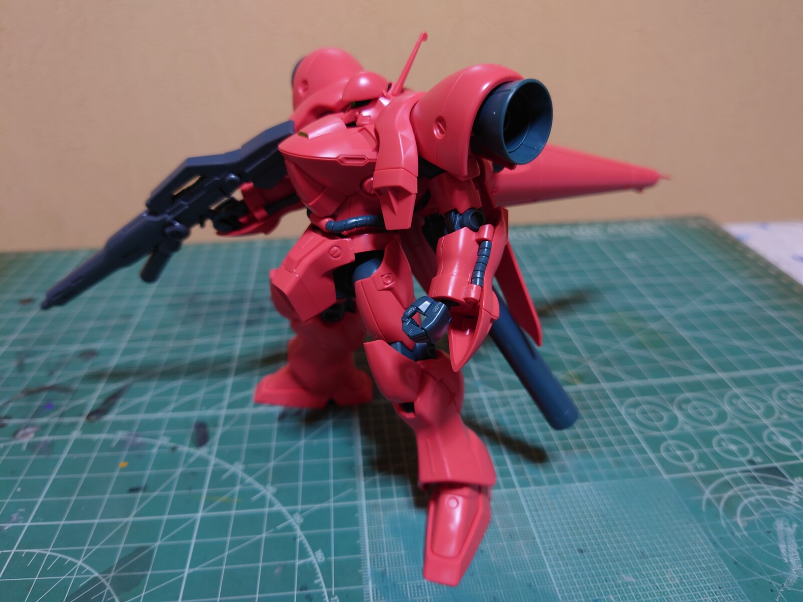 全体的に赤いカラーリングが特徴のガーベラ・テトラですが、キットの成形色を見た感じでは、真っ赤というより少し朱色っぽい赤という感じがしました。
