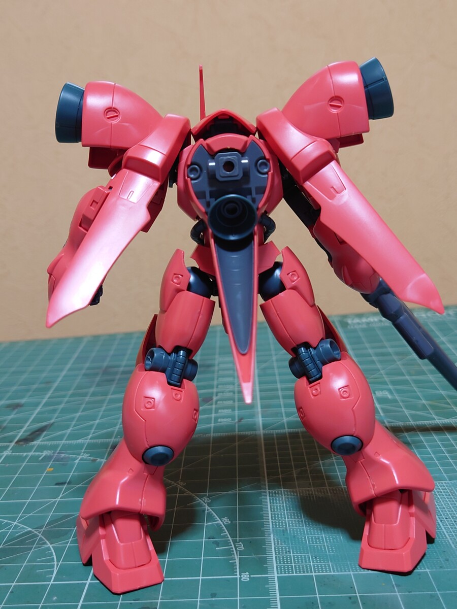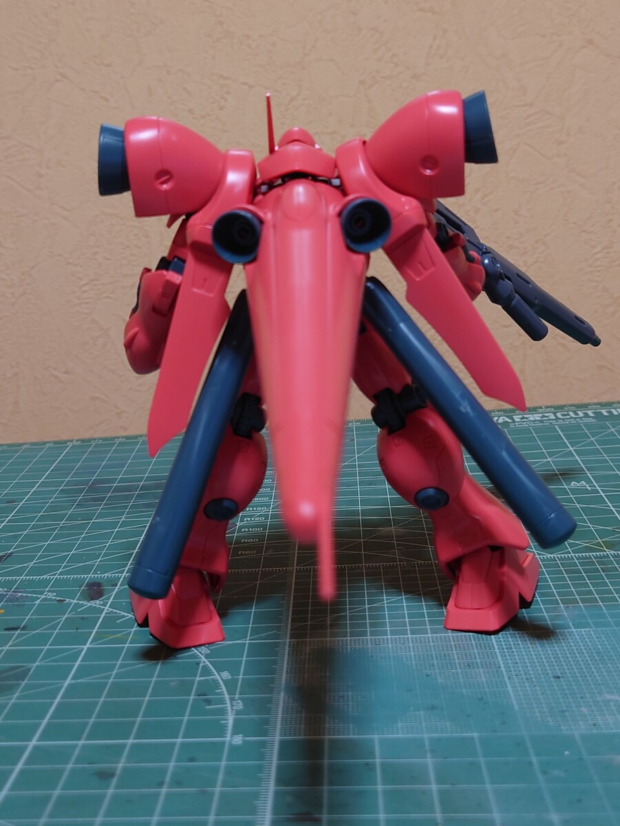 シュツルム・ブースターが大型なので、アクションベースなしでは自立が難しいと思いましたが、シュツルム・ブースターはモナカ割りで軽いので、足が小さいガーベラ・テトラでも割とバランス良く自立させる事ができます。
