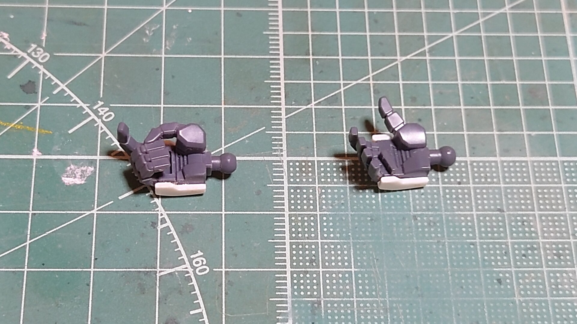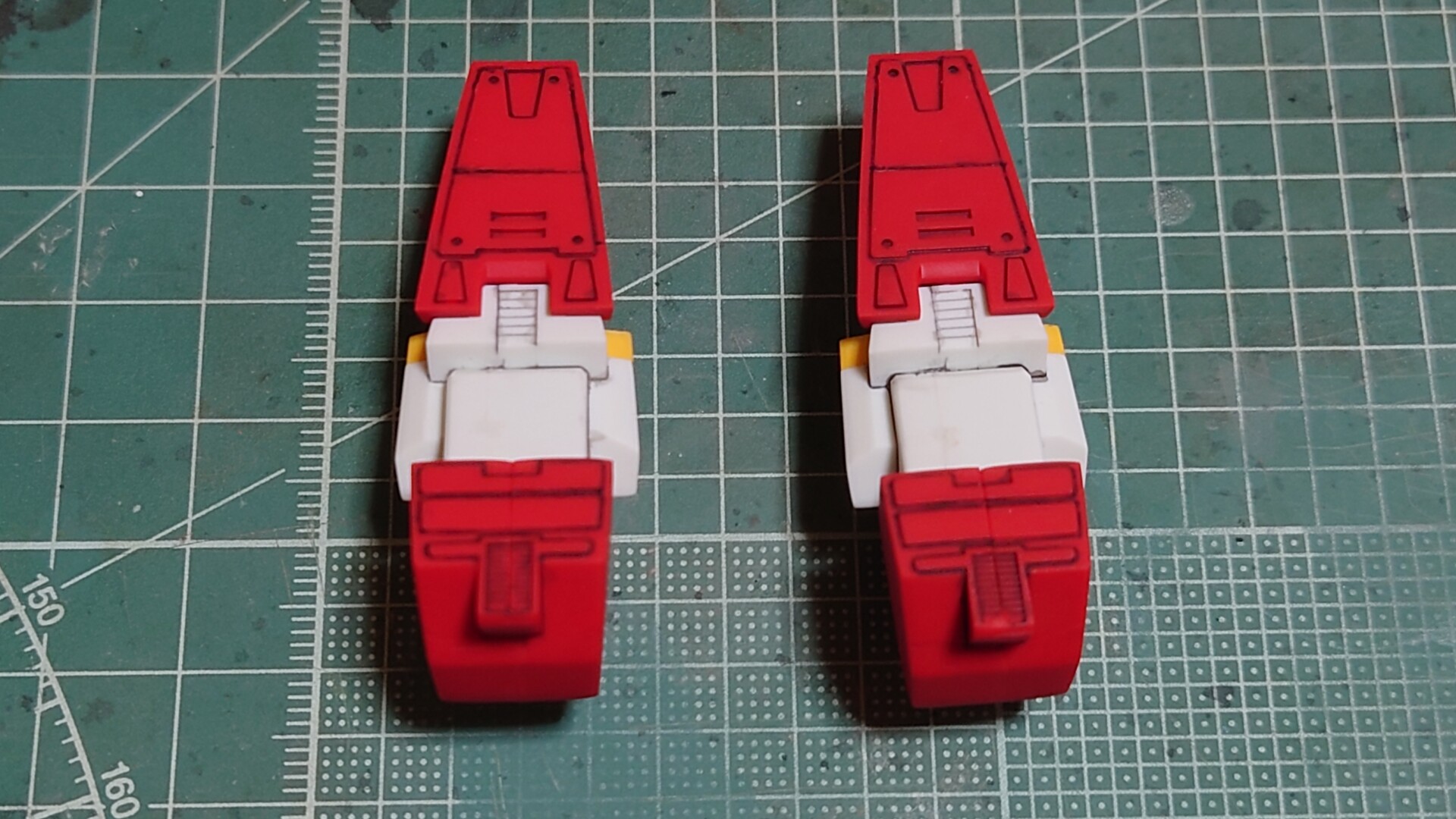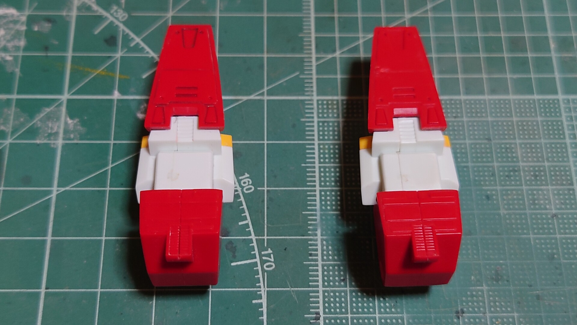 写真を撮り忘れたので少し端折ってしまいますが、足の白いパーツの合わせ目を消して、パーツを組みつけながら段階的に合わせ目を処理していくという、結構面倒な作業でした(^_^;)