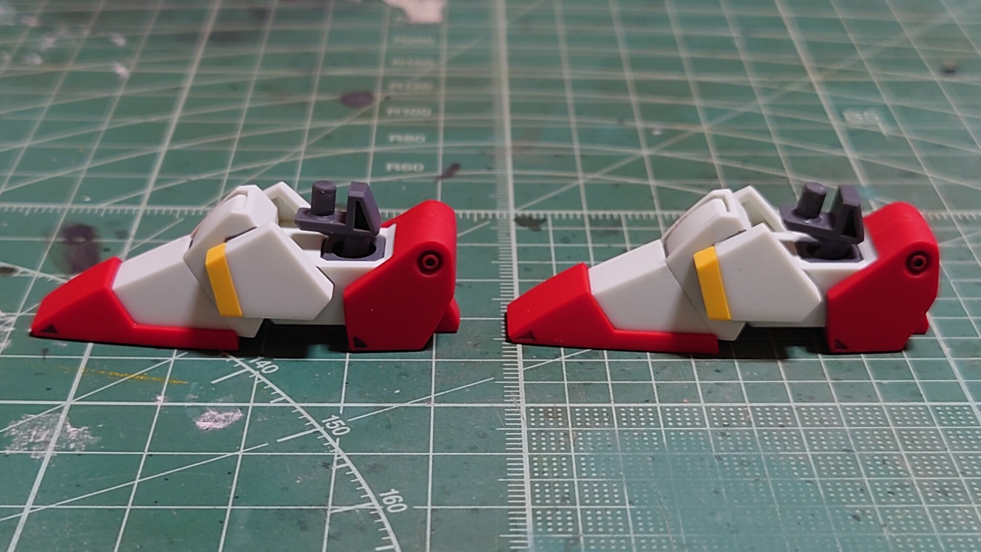 HGUC ZZガンダムは変形の際に脚部から足を取り外して、変形用のバーニアパーツを取りつける仕様になっています。