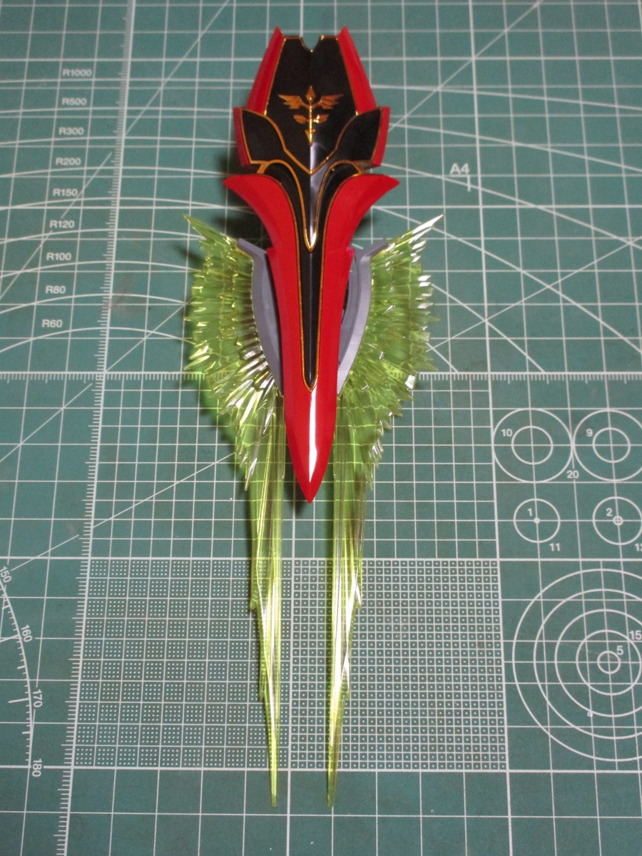 ゴールドメッキパーツのおかげで、ネオジオンのエンブレムが輝きを放っています(^_^)