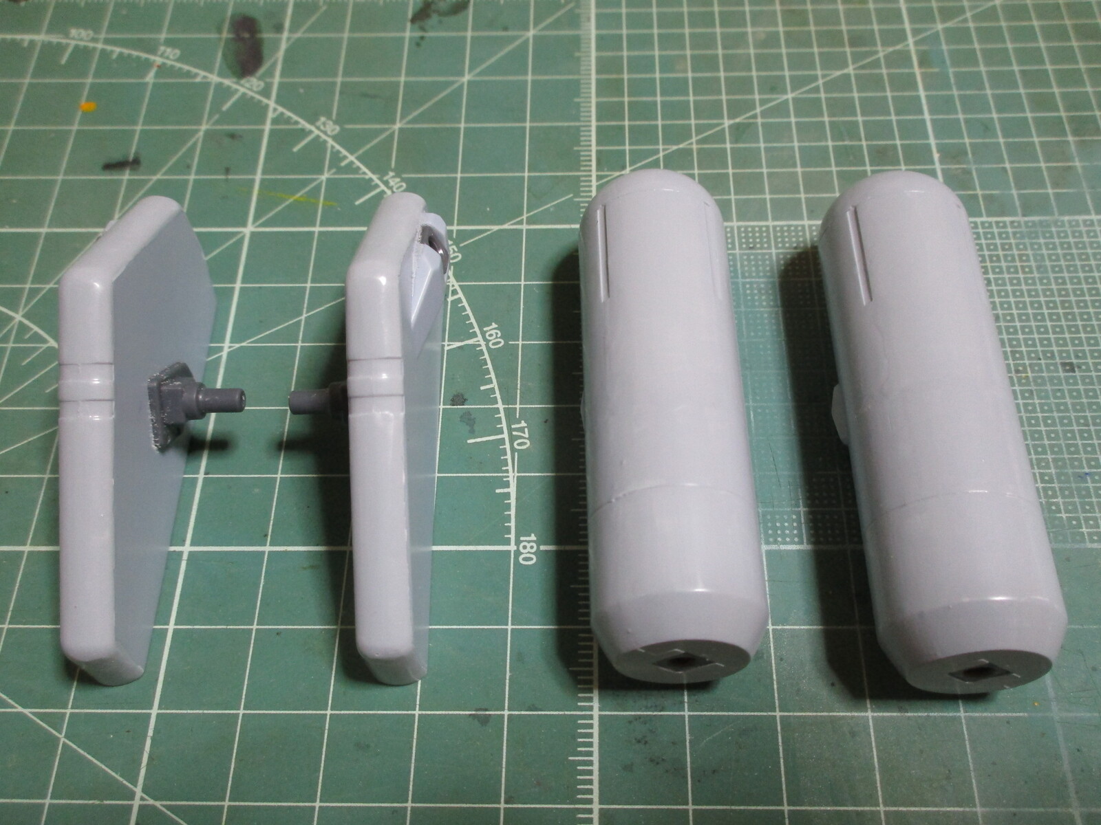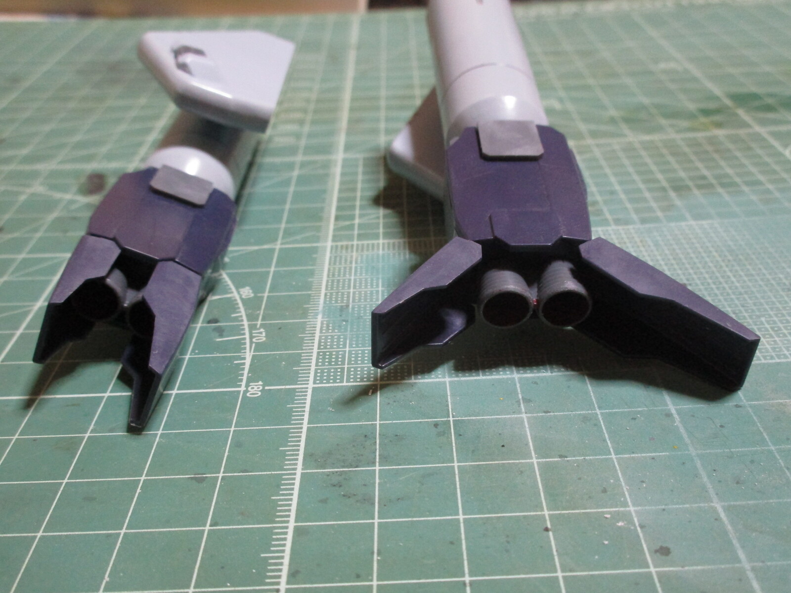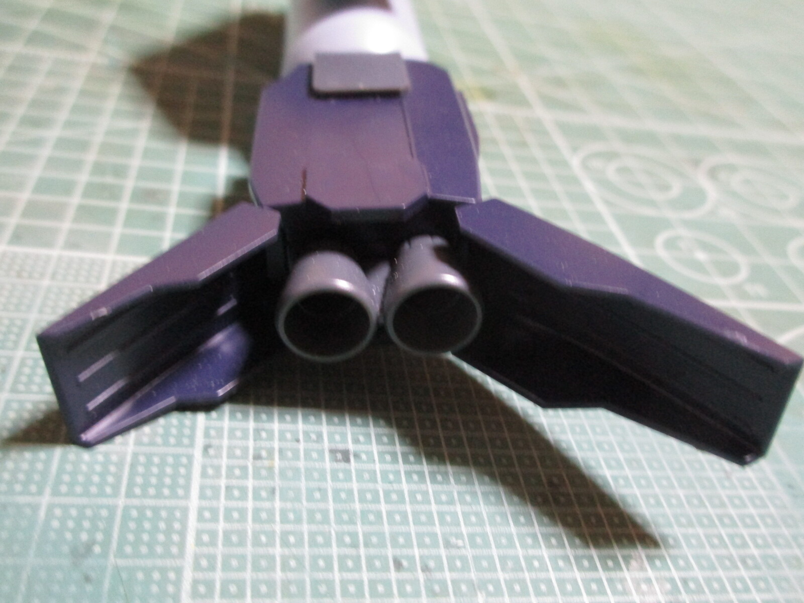 HGUC バイアランカスタムのプロペラントタンクと背部スラスターの合わせ目を消したので、増加スラスターと接続してみました。