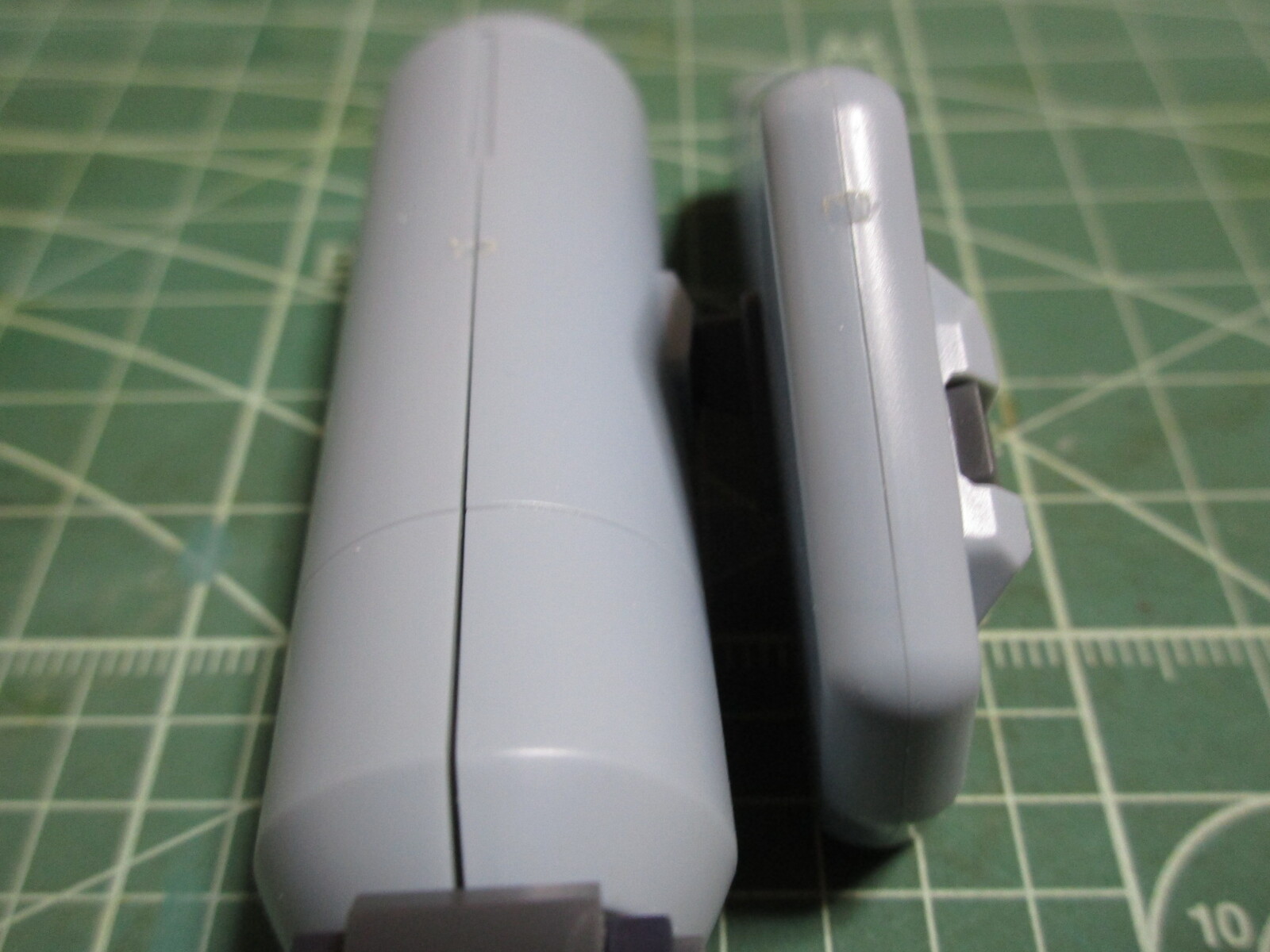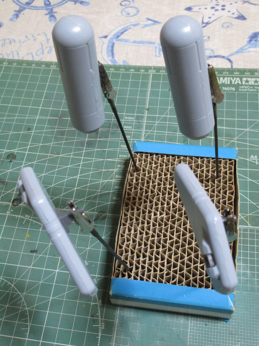 背部スラスターとプロペラントタンクの合わせ目を消すので、今回もタミヤセメントを使って硬化するまで待ちます。