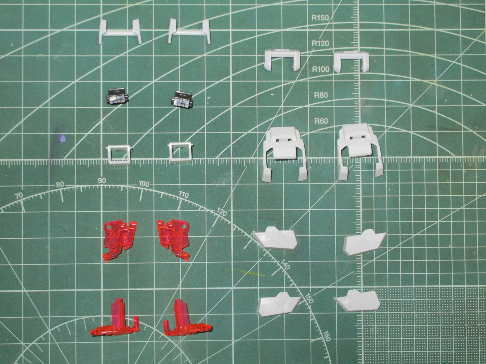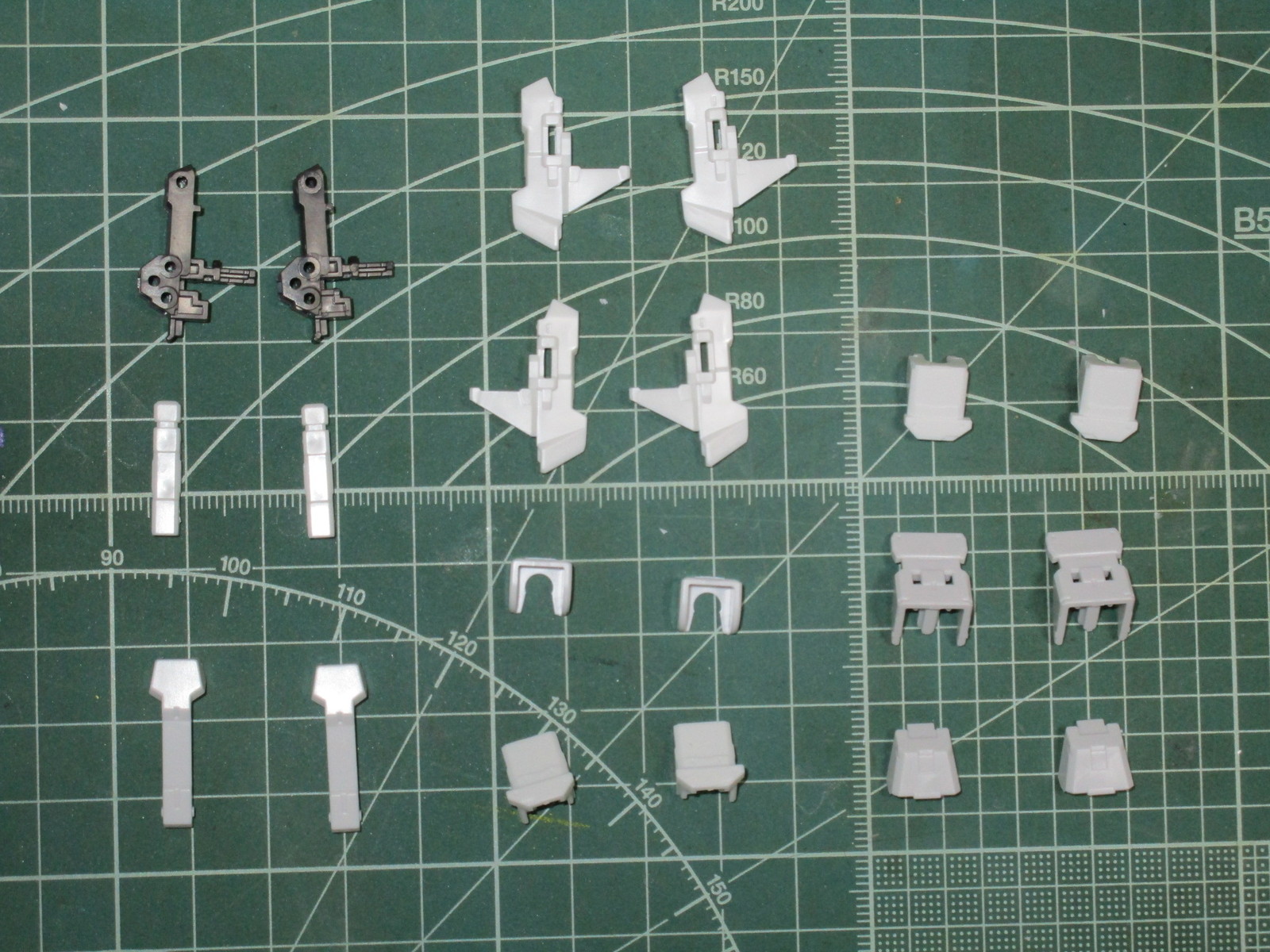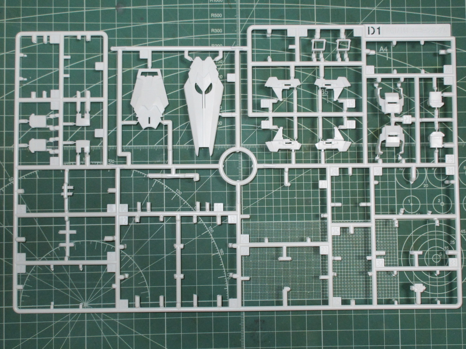 まずは上記で紹介したランナーから、RG ユニコーンガンダムの腕部と肩部の外装パーツを切り出したところです。