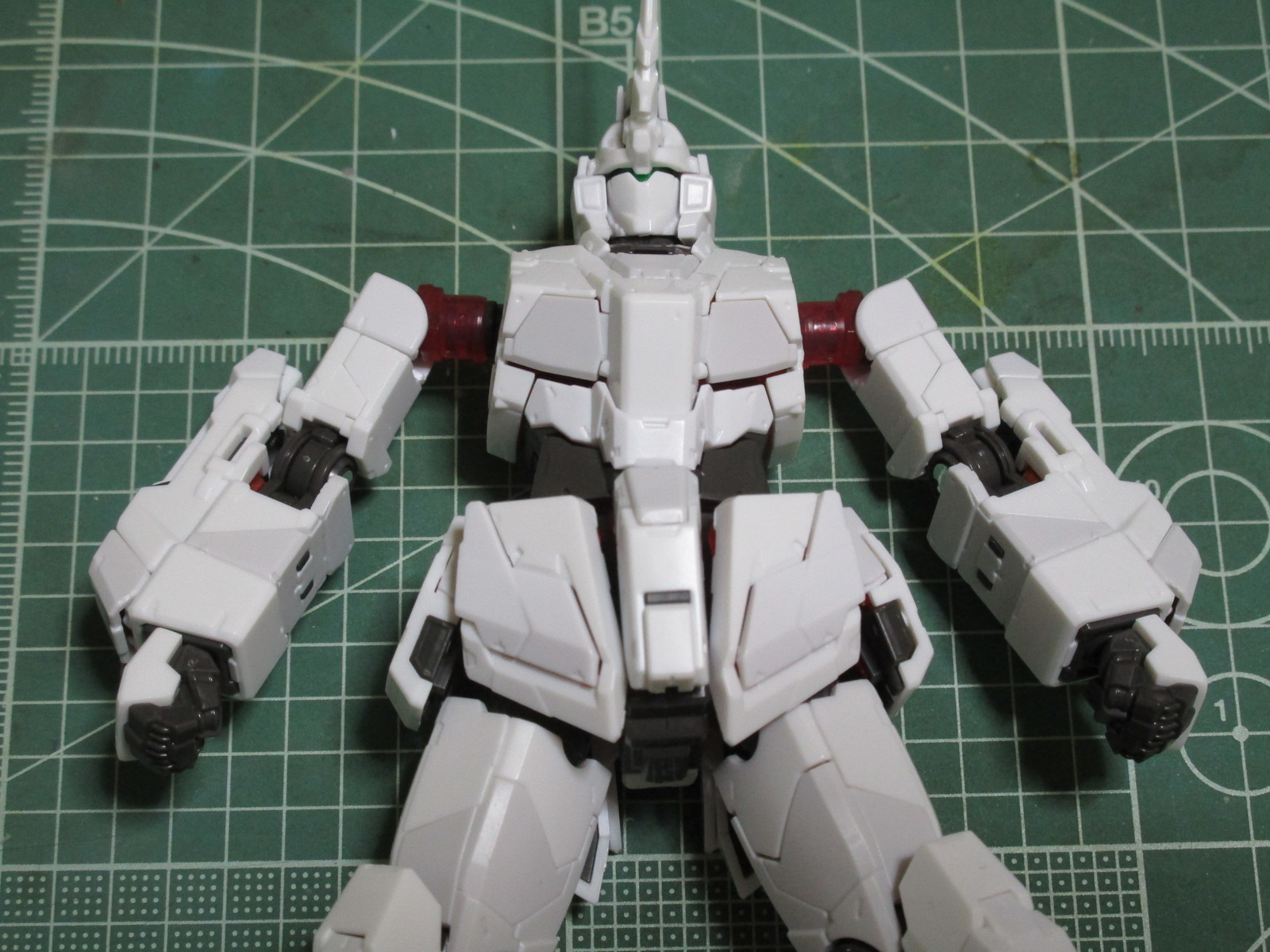 最後に、RG ユニコーンガンダムの腕部と肩部の外装パーツを取り付け終えたので、本体と接続してみました。