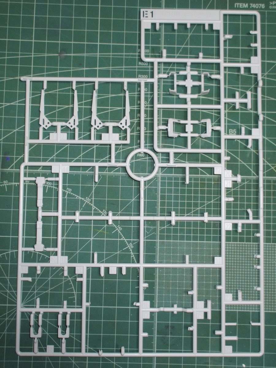 次に、白いパーツで成形されているC、D1、E1ランナーでは、腕部や肩部の外装パーツを使用します。