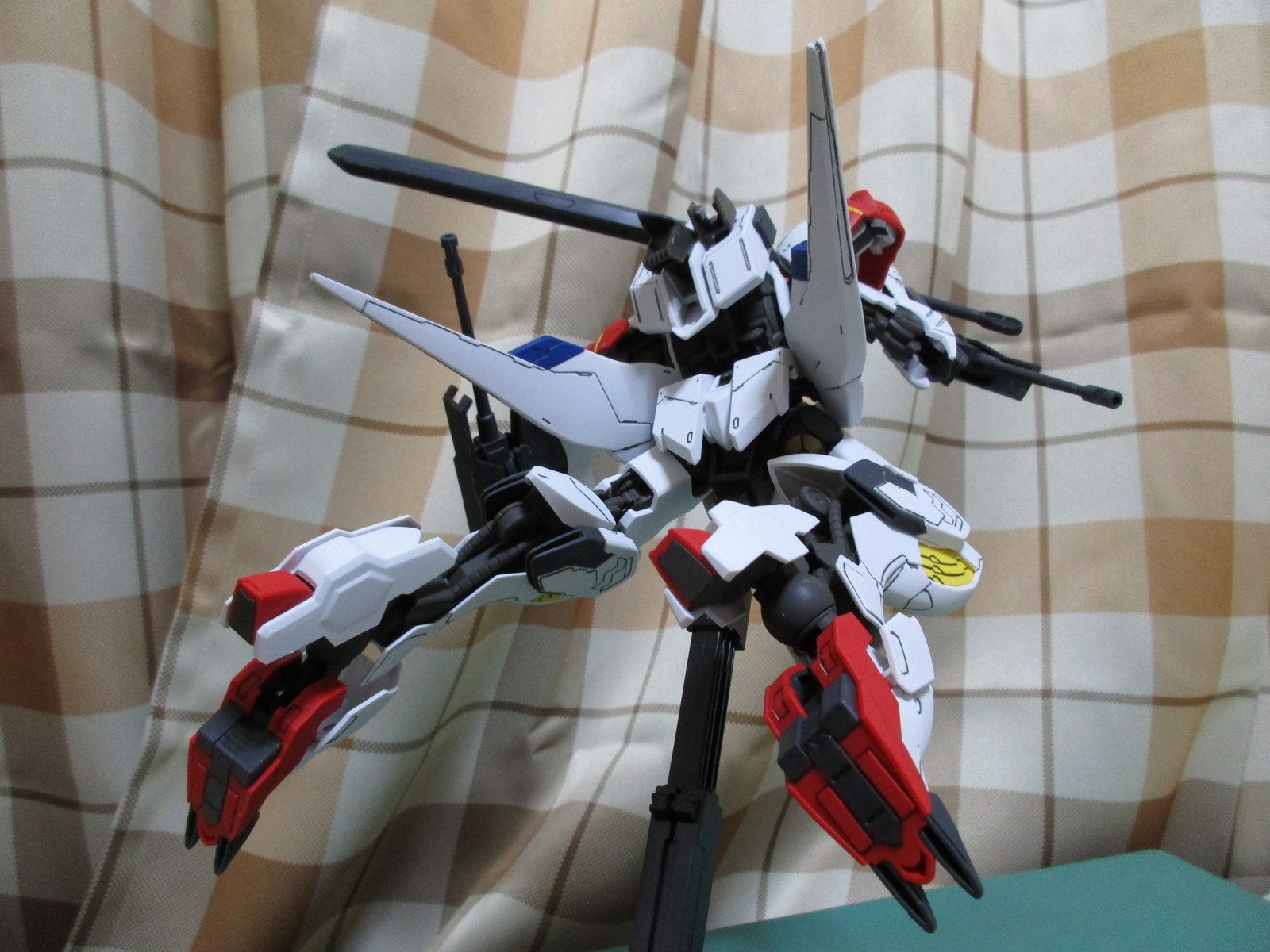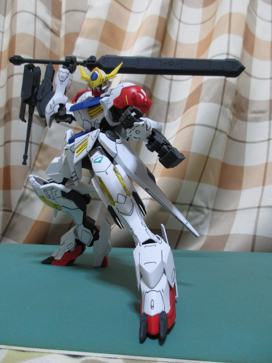 バックパックやサイドアーマーに脚部も良く可動するので、ソードメイスを構えた突撃シーンも容易に再現する事が出来ます(^_^)