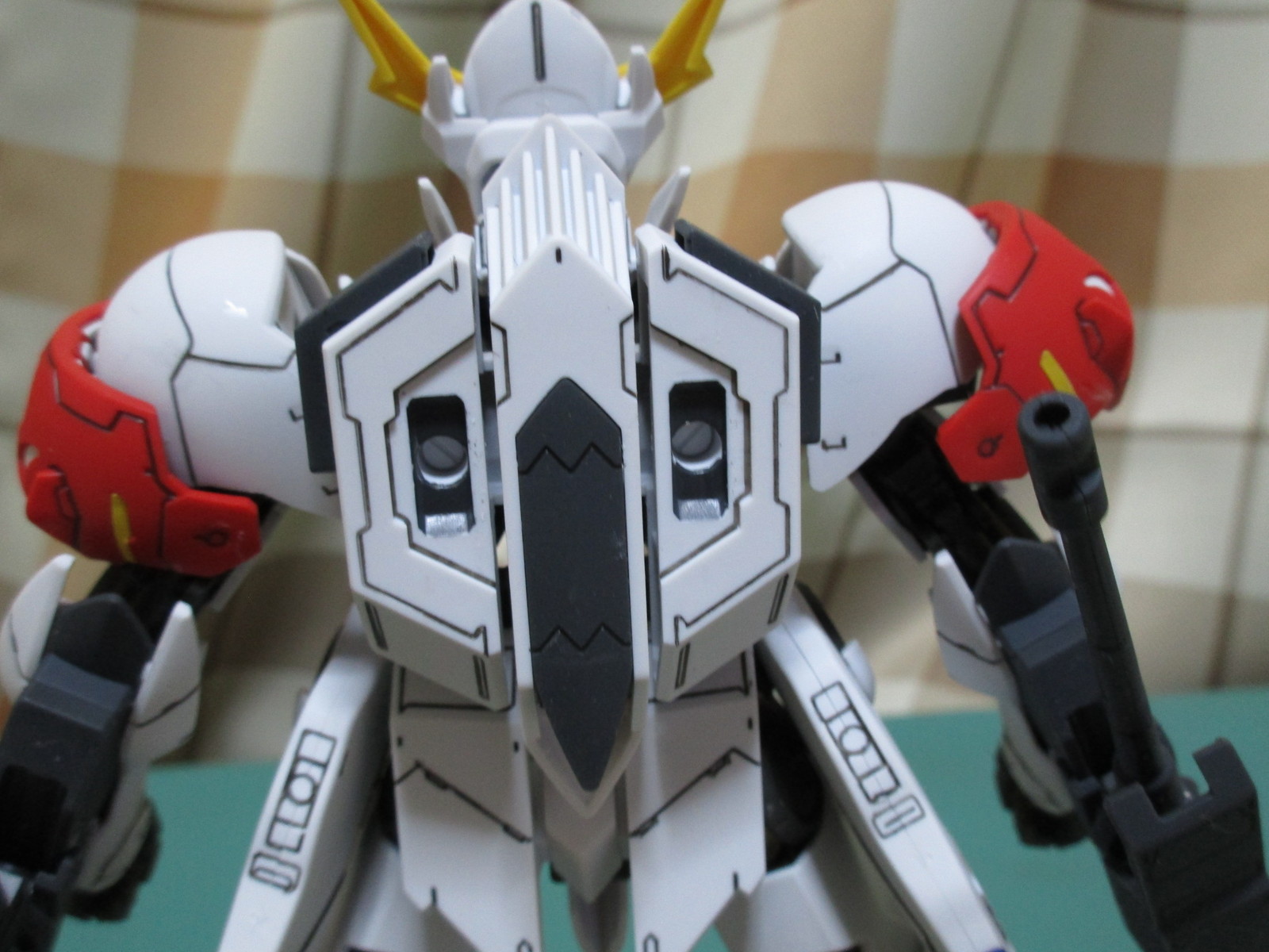 中でも、肩部アーマーにある鉄華団のエンブレムの再現は見事です(^_^)