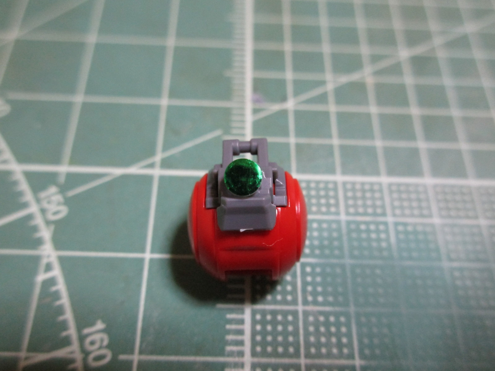コクピットブロックのモノアイ部分は、クリアパーツで再現されています。