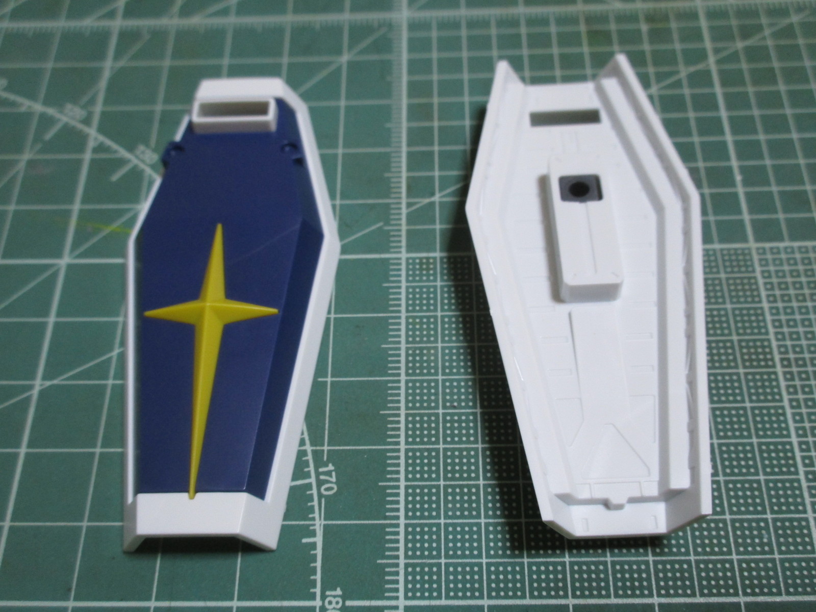 シールドの裏側ですが、完成見本を見てみるとグレーに塗装されています。
