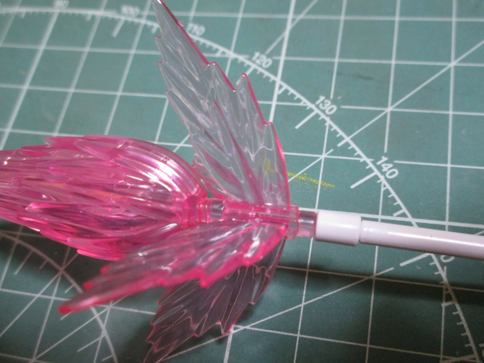 しかし1つ残念に思ったのは、ビーム刃が展開する基部の部分までクリアパーツになっていることです。