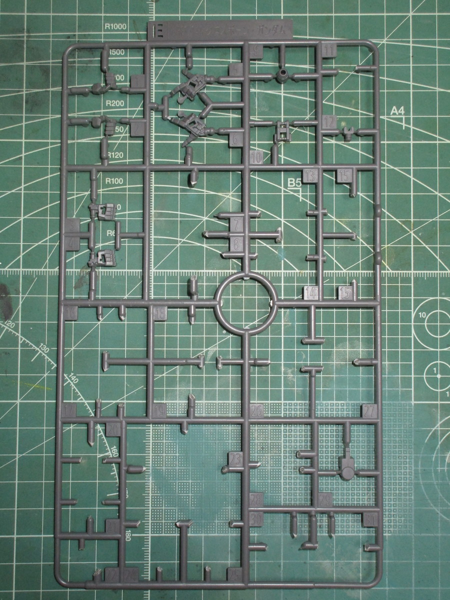 次に、グレーのパーツで成形されているEランナーでは、マニピュレーターのパーツを使用します。