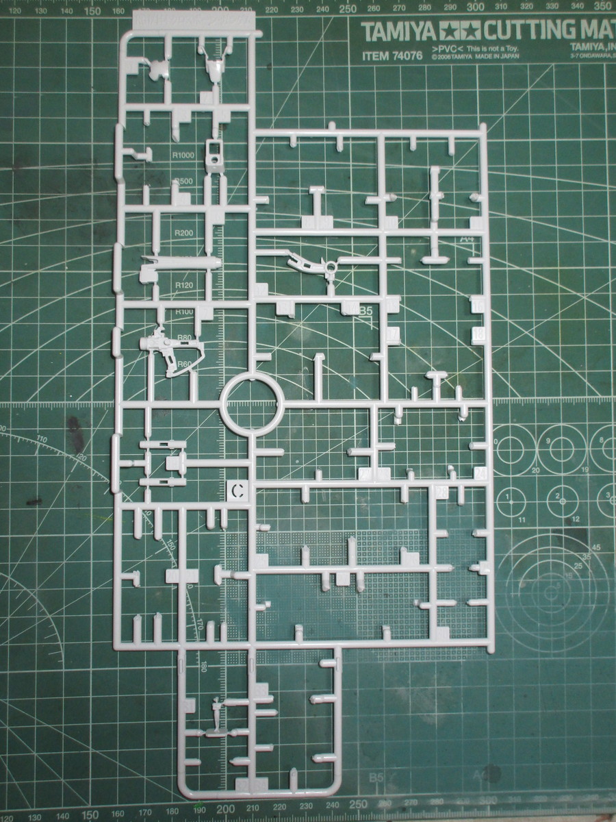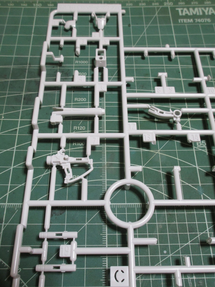 次に、白いパーツで成形されているCランナーでは、ビーム・ザンバーやビーム・サーベルのパーツを使用します。
